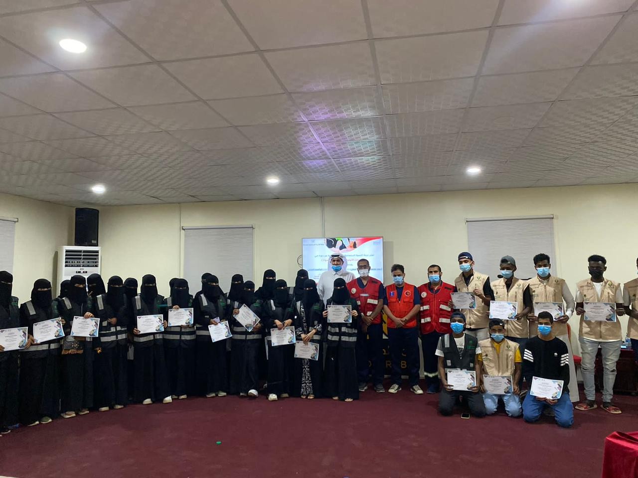 وكانت الدورة خاصة بأعضاء وعضوات اللجنة واستمعوا خلالها لشرح شامل عن آلية عمل هيئة الهلال الأحمر السعودي وكيفية الإبلاغ عن الحالات الإسعافية لغرف العمليات على رقم الخدمة الطبية الإسعافية (997) وتطبيق أسعفني للبلاغات الإسعافية وكيفية التعامل مع جميع الحالات الإسعافية الطارئة ، ونوه مقدم الدورة المدرب : احمد ناصر شبلي كيفية التواصل مع الهلال الاحمر واتقان الموقع للوصل السريع وكان يحث الاعضاء بالتعامل الصحيح للنقاذ الشخص المصاب وكيفية الحماية عليه لوصل الهلال الاحمر .