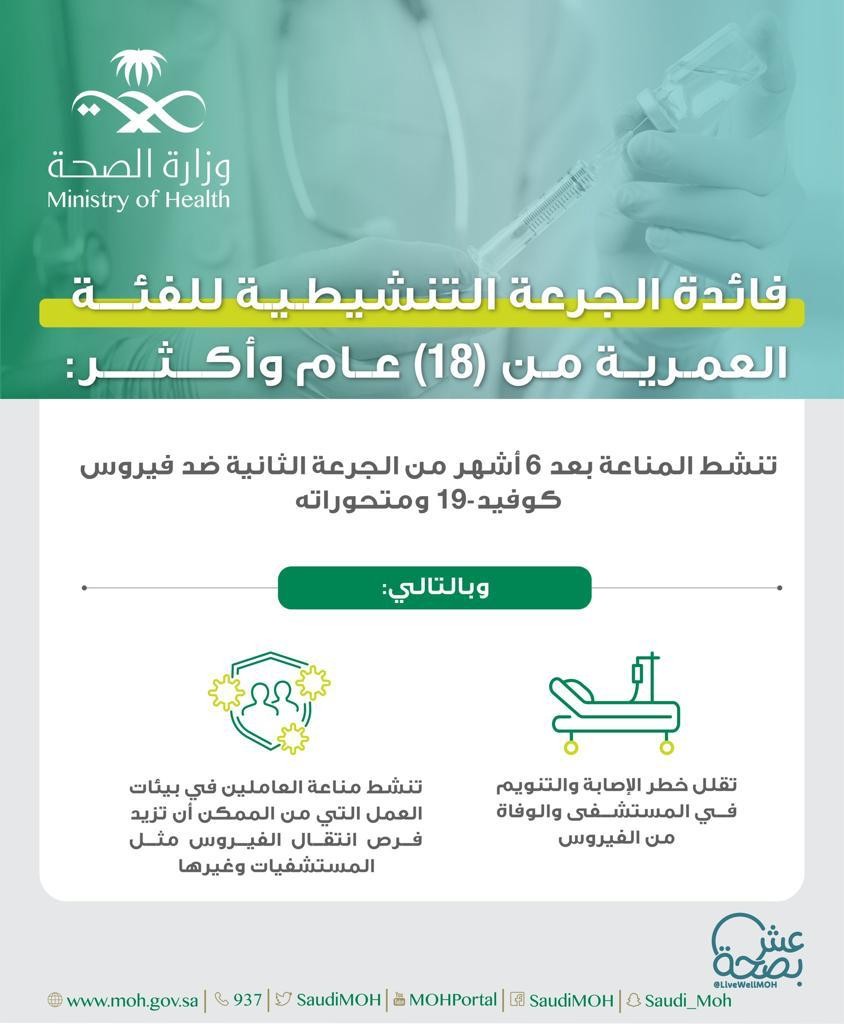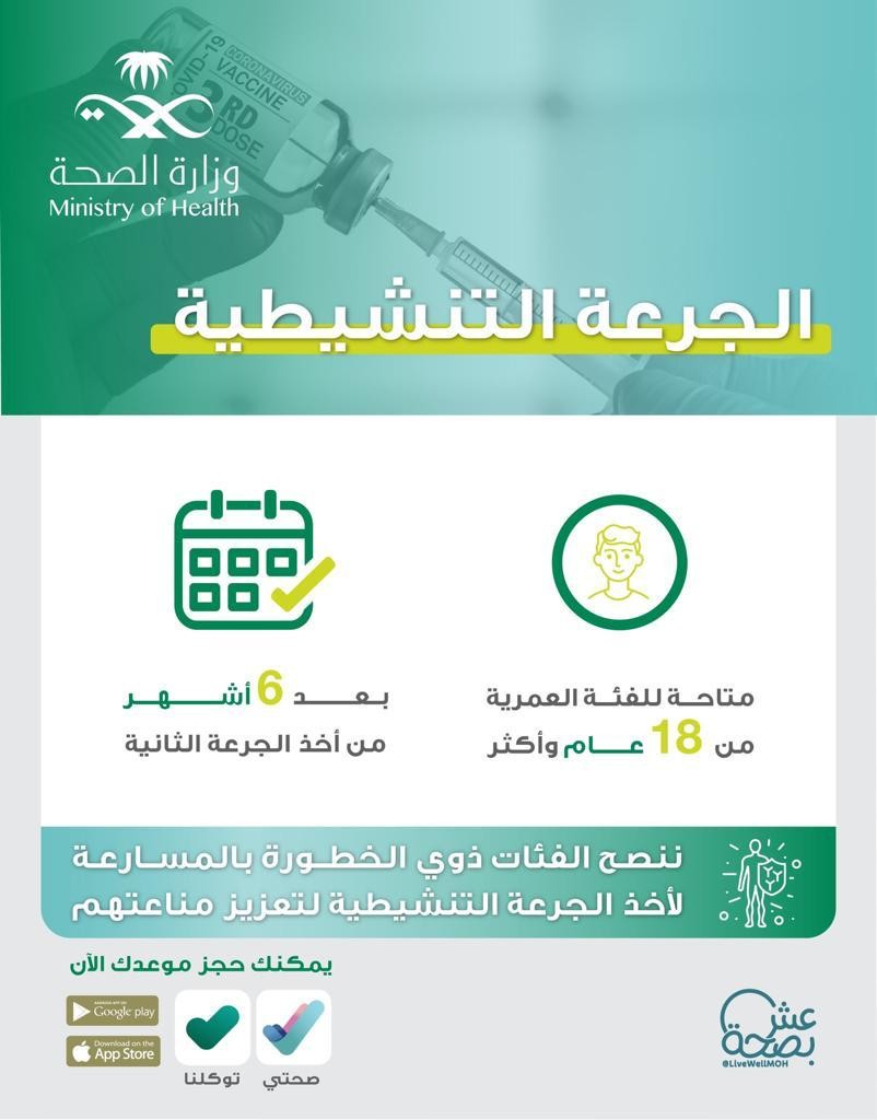 نظمت إدارة التوعية الصحية  بصحة جدة فعالية الجرعة التنشيطية للفئة العمرية 18 عام فأكثر بعد 6 أشهر من أخذ الجرعة الثانية مع الحرص والنصح للفئات ذوي الخطورة بالمسارعة بأخذ الجرعة التنشيطية لتعزيز مناعتهم حيث أنها تقلل خطر الإصابة والتنويم في المستشفى والوفاة من الفايروس وكذلك تنشط مناعة العاملين في بيئات العمل التي من الممكن أن تزيد فرص إنتقال الفايروس وغيرها ، وتعتبر هذه الجرعة التنشيطية مهمة أيضاً لكبار السن لأن فرص تضررهم بالإصابة أعلى ولأن نزول المناعة لديهم أعلى.