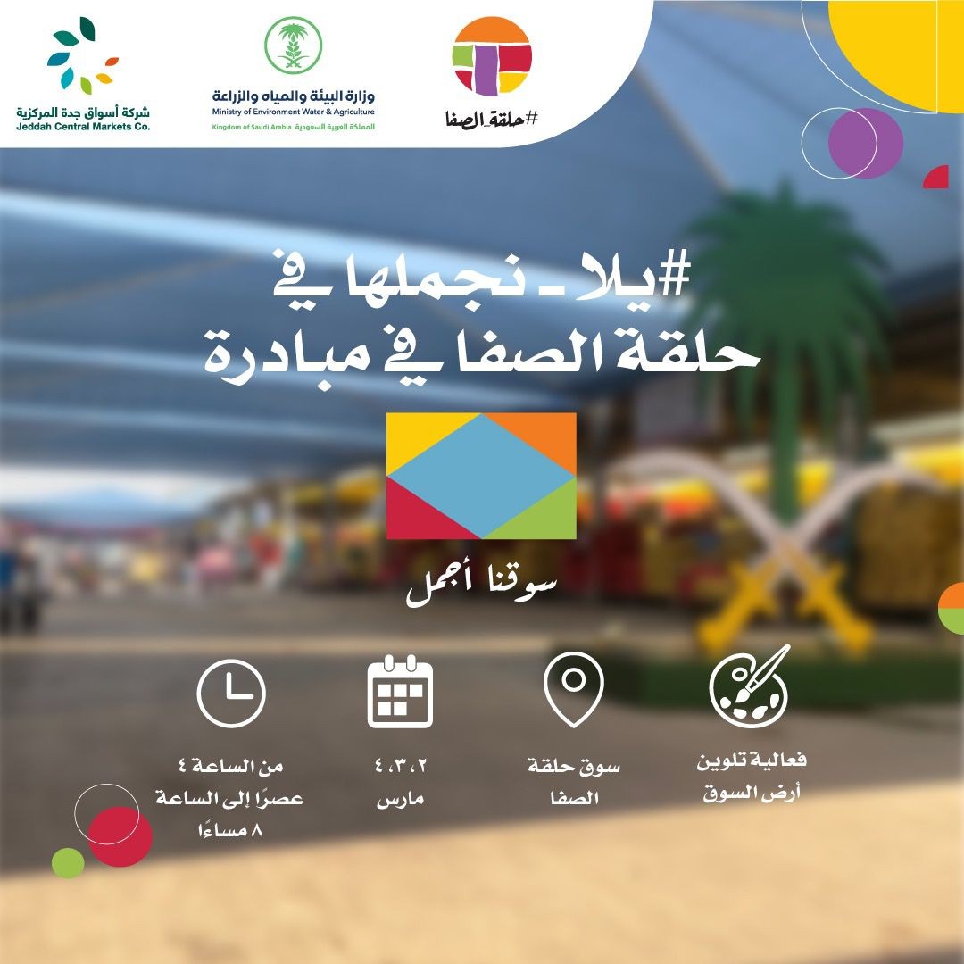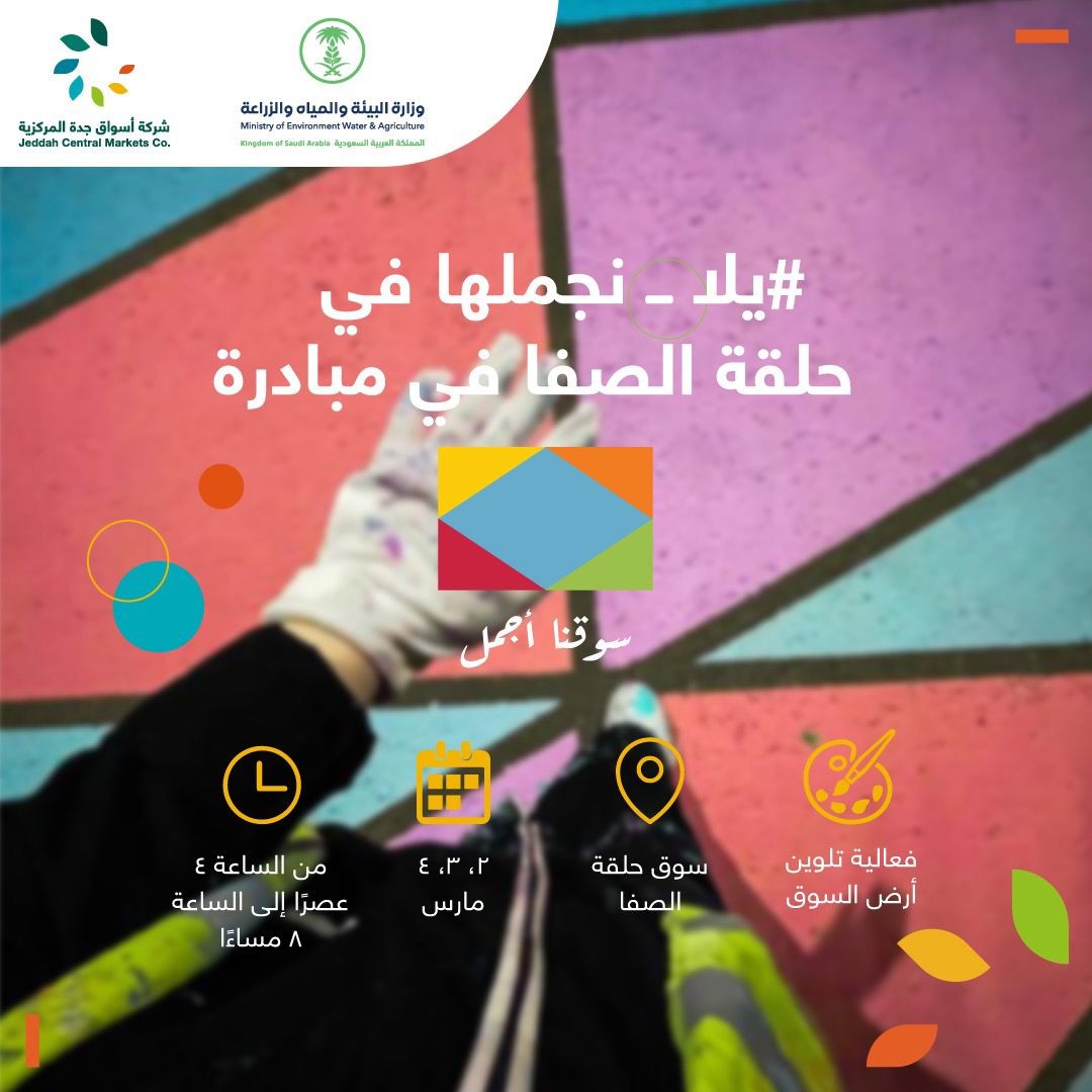 كشف مدير عام فرع وزارة البيئة والمياه والزراعة بمنطقة مكة المكرمة المهندس سعيد بن جار الله الغامدي ، عن مبادرة " سوقنا أجمل " لتجميل الممر الرئيسي لسوق حلقة حلقة الخضار والفاكهة بالصفا وذلك بعمل تصميم على أرض السوق بالتعاون مع شركة أسواق جدة المركزية " المستثمر والمشغل للسوق المركزي للخضار والفاكهة بجدة" وفريق هتان التطوعي وسيتم فتح المشاركة لجميع الراغبين من زوار السوق في العمل الفني للتفاعل معهم .