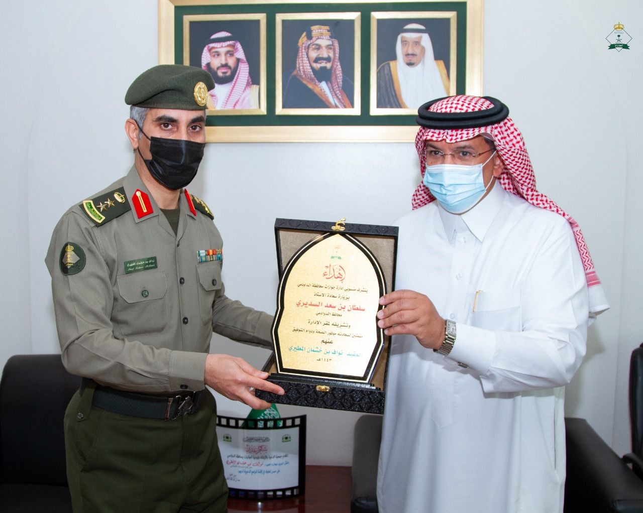 وفي ختام الزياره وجه شكره للعقيد نواف وزملائه لمايقومون من خدمه لمراجعي جوازات المحافظه