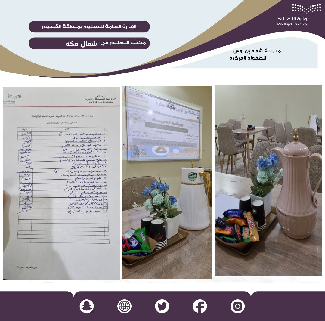 فيما تضمنت الورشة استعراضاً مرئياً للدروس واستخداماً للبرامج التفاعلية.