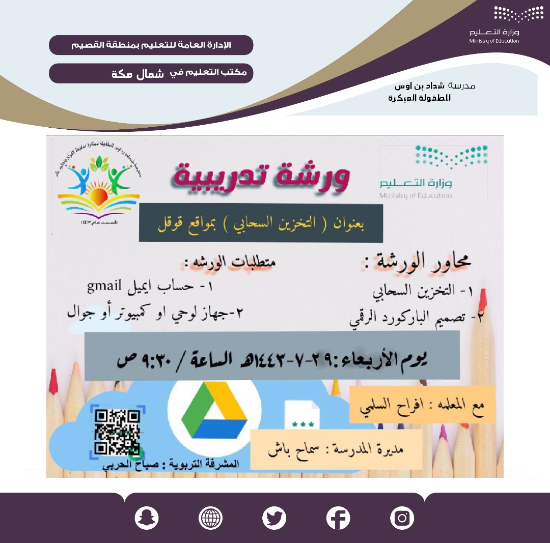 التخزين السحابي ورشة تدريبية بابتدائية شداد بن أوس للطفولة المبكرة