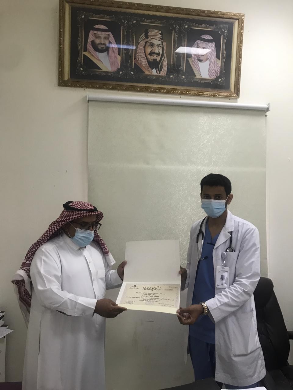 تلقى الطبيب المهند خبراني، وفني الوبائيات هشام سيد، بمركز صحي الحصمة، بالقطاع الجنوبي بصحة جازان، شهادتي شكر، من إدارة مدرسة أم الشعنون.