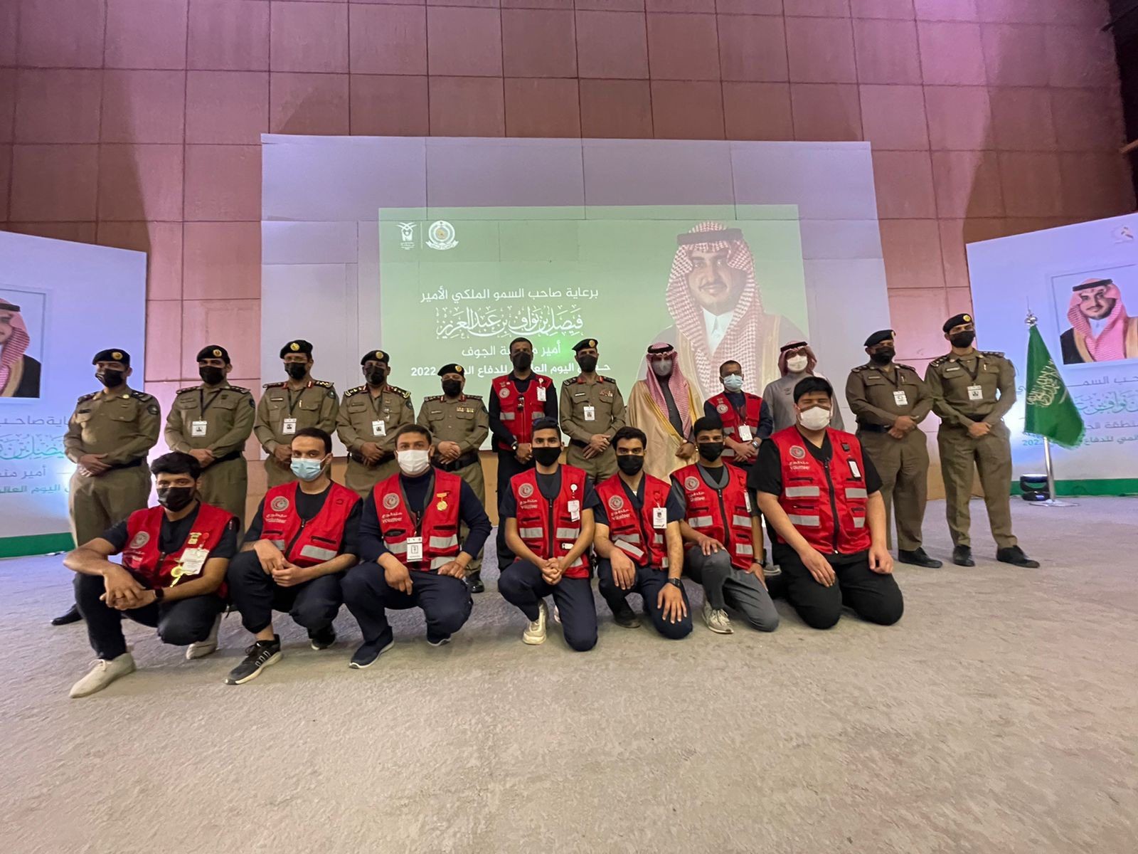 شارك فرع هيئة الهلال الأحمر السعودي بمنطقة الجوف باليوم العالمي للدفاع المدني وذلك تحت رعاية صاحب السمو الملكي الأمير فيصل بن نواف بن عبد العزيز أمير المنطقة المقام في مدينة سكاكا وبعض محافظات المنطقة.
