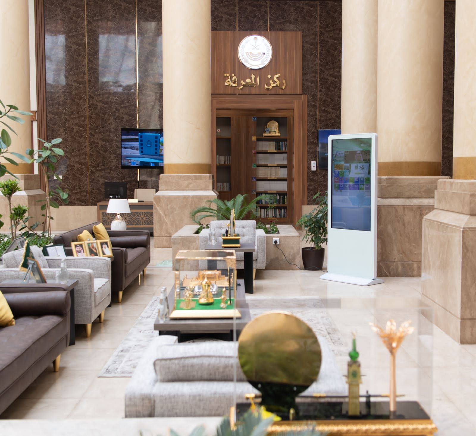 كما اطلع سموه على مشروع تأهيل المركز الشامل للمواطنين ومدخل الموظفين بديوان الامارة والذي عمل عليه مدير المركز الشامل وفريق المهندسين بادارة التشغيل والصيانة والذي سيتم تنفيذه خلال مدة لاتتجاوز 60 يوم ، ويتضمن المشروع أعمال تحسين كافة العناصر البصرية بالموقع من خلال تركيب التكسيات الرخامية والخشبية والاستفادة من كامل المساحة بتوفير مقاعد استراحة تستوعب أكبر عدد من المستفيدين ، كما تم استحداث ركن مخصص لتقديم الضيافة للزوار أثناء فترة الانتظار مع تزويد القاعة بأجهزة وشاشات تقنية حديثة تسهم بمشيئة الله في سهولة الوصول لكافة الخدمات التي يتم تقديمها من قبل إمارة المنطقة .