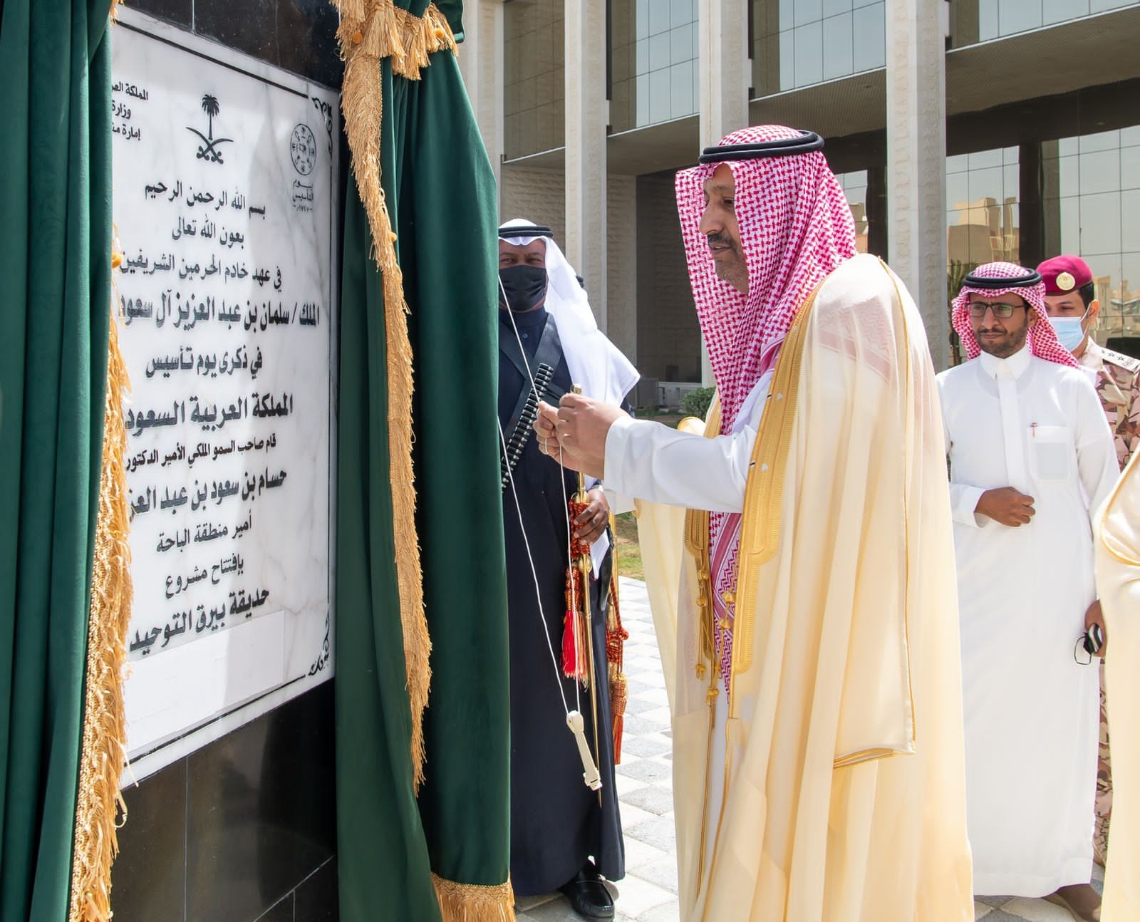 بعد ذلك دشّن سمو أمير المنطقة مشروع حديقة مبنى الامارة وسارية أكبر علم على مستوى المباني الحكومية بالمنطقة ، حيث قام سموه بإزاحة الستار عن اللوحة التذكارية للمشروع واطلع على خارطة المشروع والذي يحتوي على ممشى بطول 329 م ومسطحات خضراء بمساحة 2666م وعدد 50 شتلة زيتون ، وسارية بطول 50 م تحمل علم المملكة العربية السعودية بطول 18م وعرض 12م كما تجول في أرجاء الحديقة مستمعاً لشرح من قبل فريق التشغيل والصيانة ، يذكر أن المشروع يعد حديقة متكاملة تأتي ضمن مبادرة تحسين المشهد البصري لمبنى الامارة .