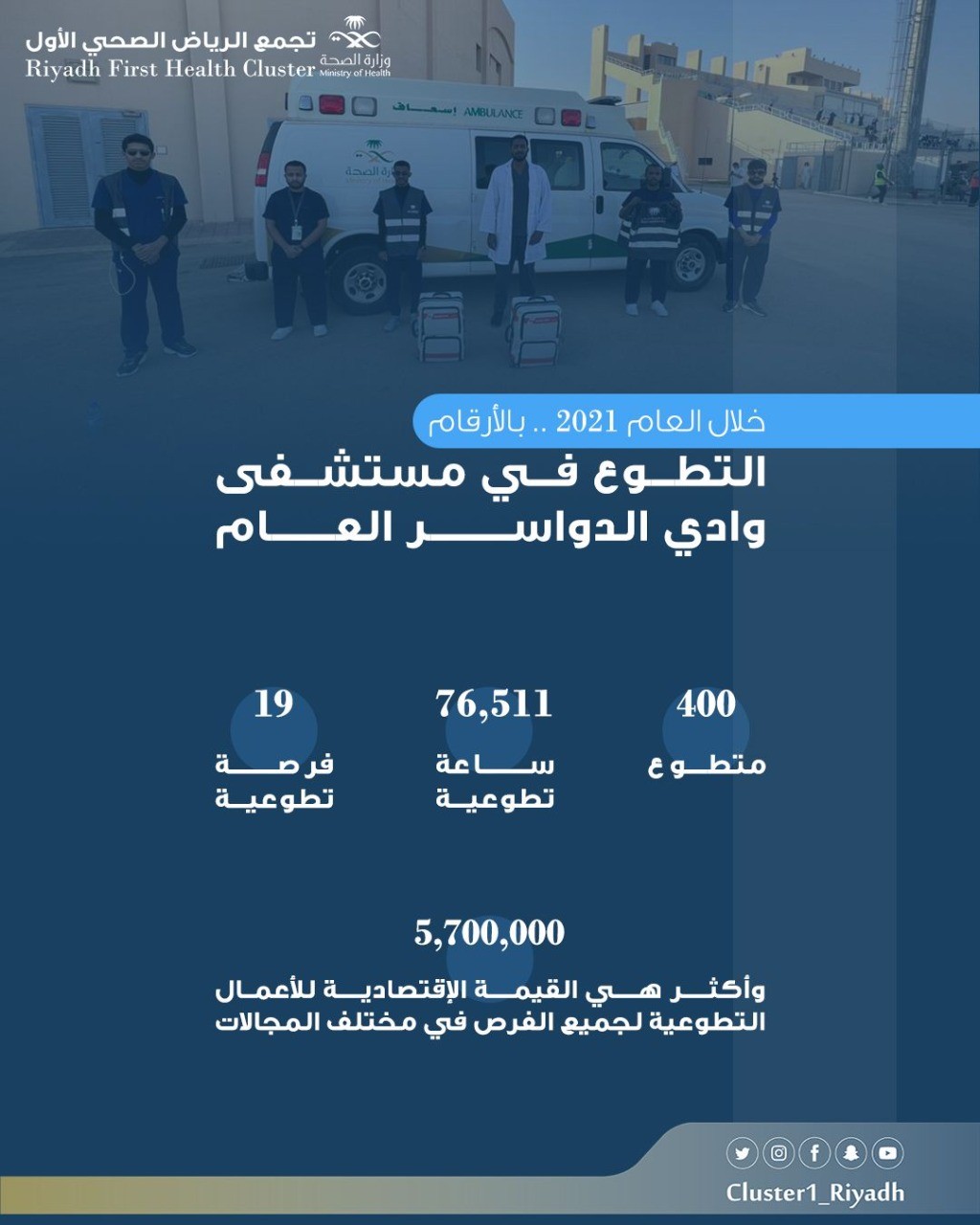76 ألف ساعة عمل حققتها منصة التطوع الصحي في وادي الدواسر