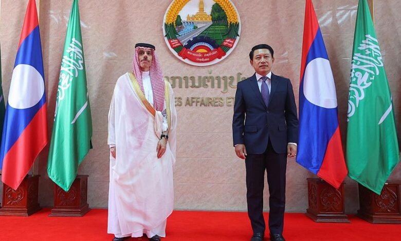 التقى صاحب السمو الأمير فيصل بن فرحان بن عبدالله وزير الخارجية، صباح اليوم، بمعالي وزير خارجية جمهورية لاوس سالومشاي كوماثيت، في مقر وزارة الخارجية بالعاصمة فيينتيان، وذلك خلال زيارته الرسمية الأولى إلى جمهورية لاوس الديموقراطية الشعبية.