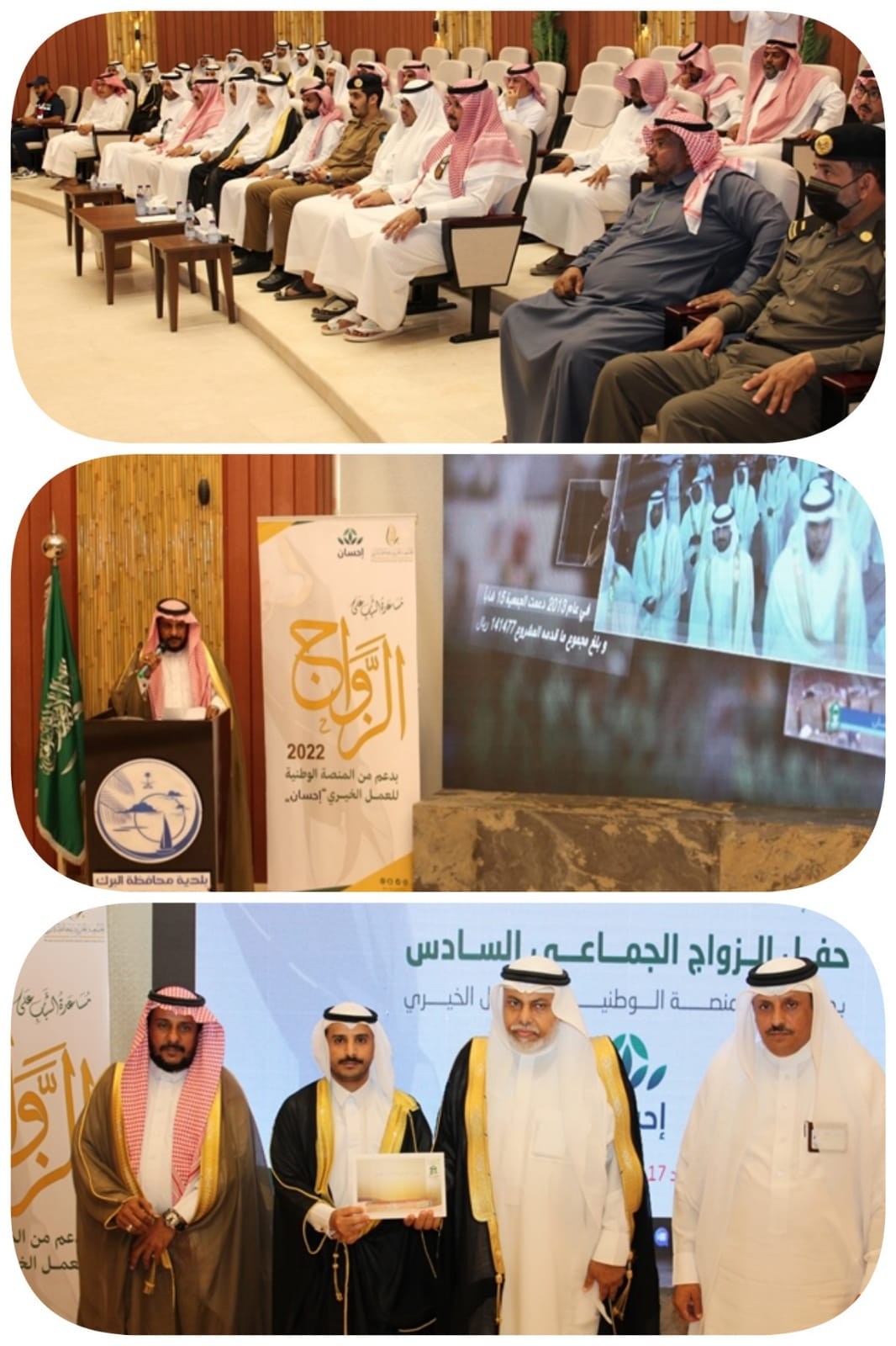 أقامت جمعية البر الخيرية بمحافظة البرك صباح اليوم الأحد 17 شعبان 1443ه حفل الزواج الجماعي السادس والاحتفاء بزواج 10 شباب وذلك بدعم من المنصة الوطنية للعمل الخيري "إحسان" وتشريف من محافظ البرك الأستاذ عبد الرحيم الحسين الهلالي وحضور وكيل محافظة البرك الأستاذ هاشم بن عوض الشهري ورئيس بلدية محافظة البرك وحضور مديري الإدارات الحكومية والأهلية بالمحافظة.