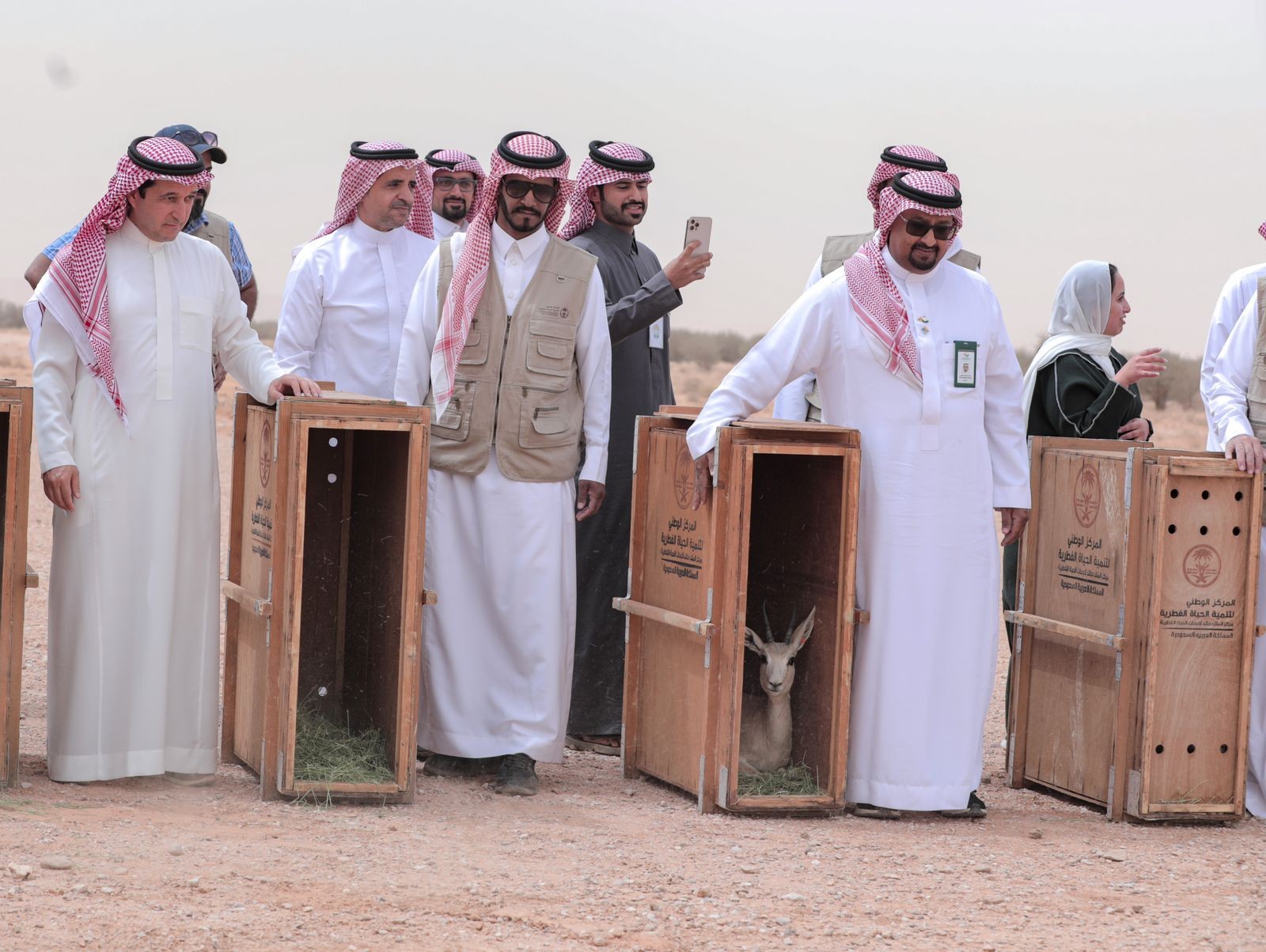 أطلق المركز الوطني لتنمية الحياة الفطرية بالتعاون مع هيئة تطوير محمية الإمام عبد العزيز بن محمد الملكية، اليوم الإثنين 20 من المها الوضيحي و 30 ظبي ريم بمحمية الملك خالد الملكية، وذلك ضمن برنامج المركز الوطني لتنمية الحياة الفطرية لإكثار وإعادة توطين الكائنات المحلية المهددة بالانقراض في بيئاتها الطبيعية في جميع مناطق المملكة.