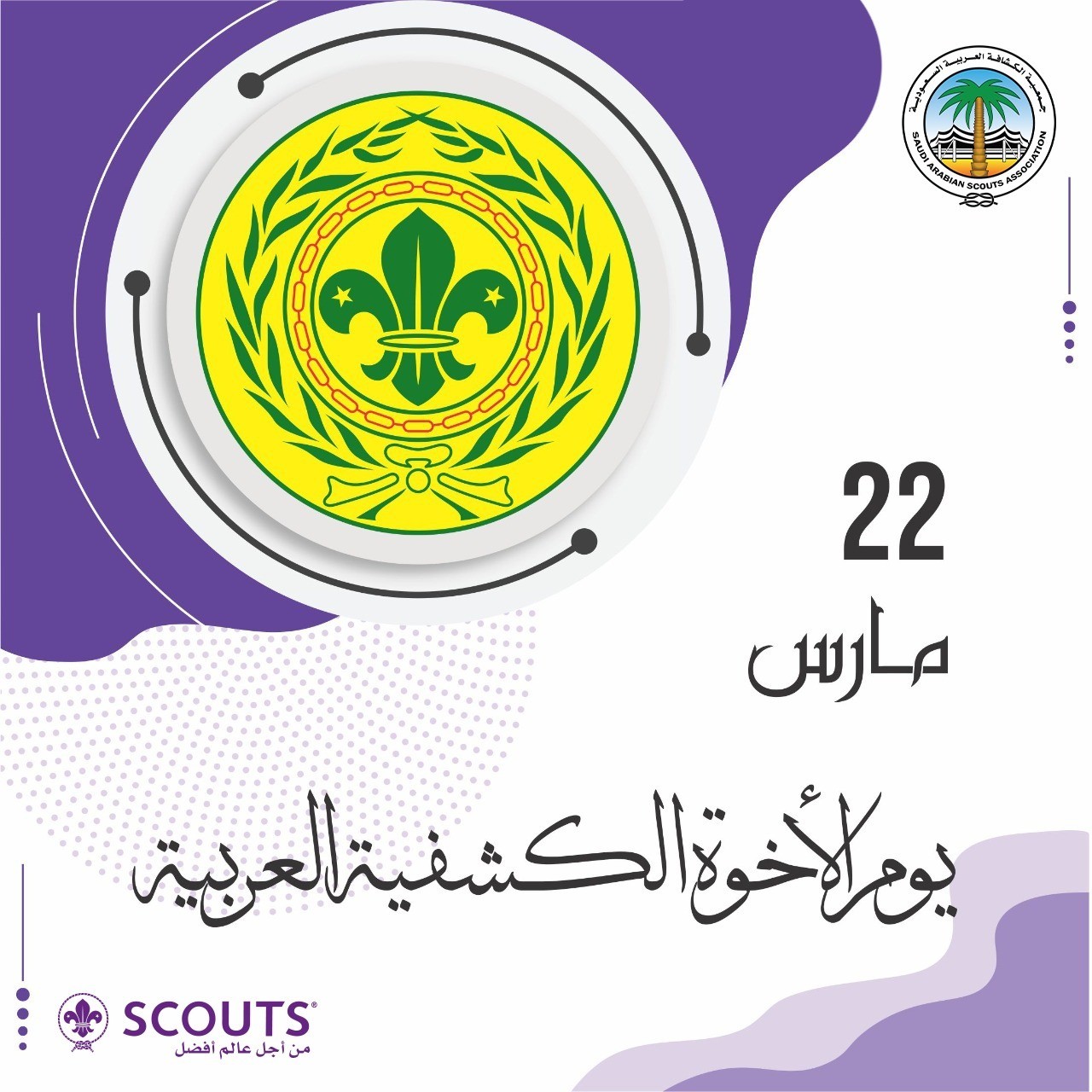 شاركت جمعية الكشافة العربية السعودية، اليوم، في الاحتفاء الكشفي العربي بمناسبة يوم الأخوة الكشفية العربية الذي يوافق ذكرى تأسيس جامعة الدول العربية عام 1945، حيث اختارت له المنظمة الكشفية العربية ذلك التاريخ المصادف لـ 22 مارس عرفاناً بالدور الرائد للجامعة في الاعتراف بالمنظمة ودعمها المستمر للحركة ترسيخاً لعرى الأخوة والوحدة العربية.