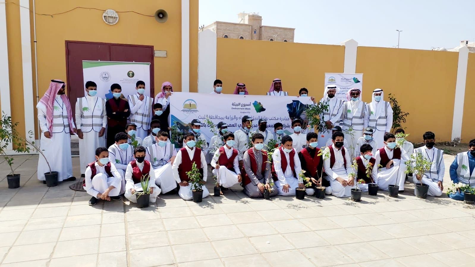 كما تم زراعة عدد من الشتلات الزراعية بمدرسة ولي العهد المتوسطة بحضور عدد من طلاب المدرسة .