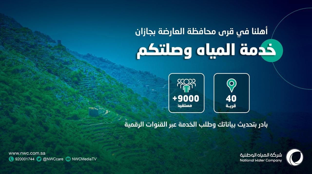 بدأت شركة المياه الوطنية، ممثلة بوحدة أعمال المياه بمنطقة جازان تشغيل شبكات مياه الشرب بمحافظة العارضة لـخدمة 40 قرية، وذلك بهدف تعزيز منظومة المياه في المنطقة، وزيادة نسب التغطية، وتحسين الكفاءة التشغيلية للخدمات المائية في المحافظة.