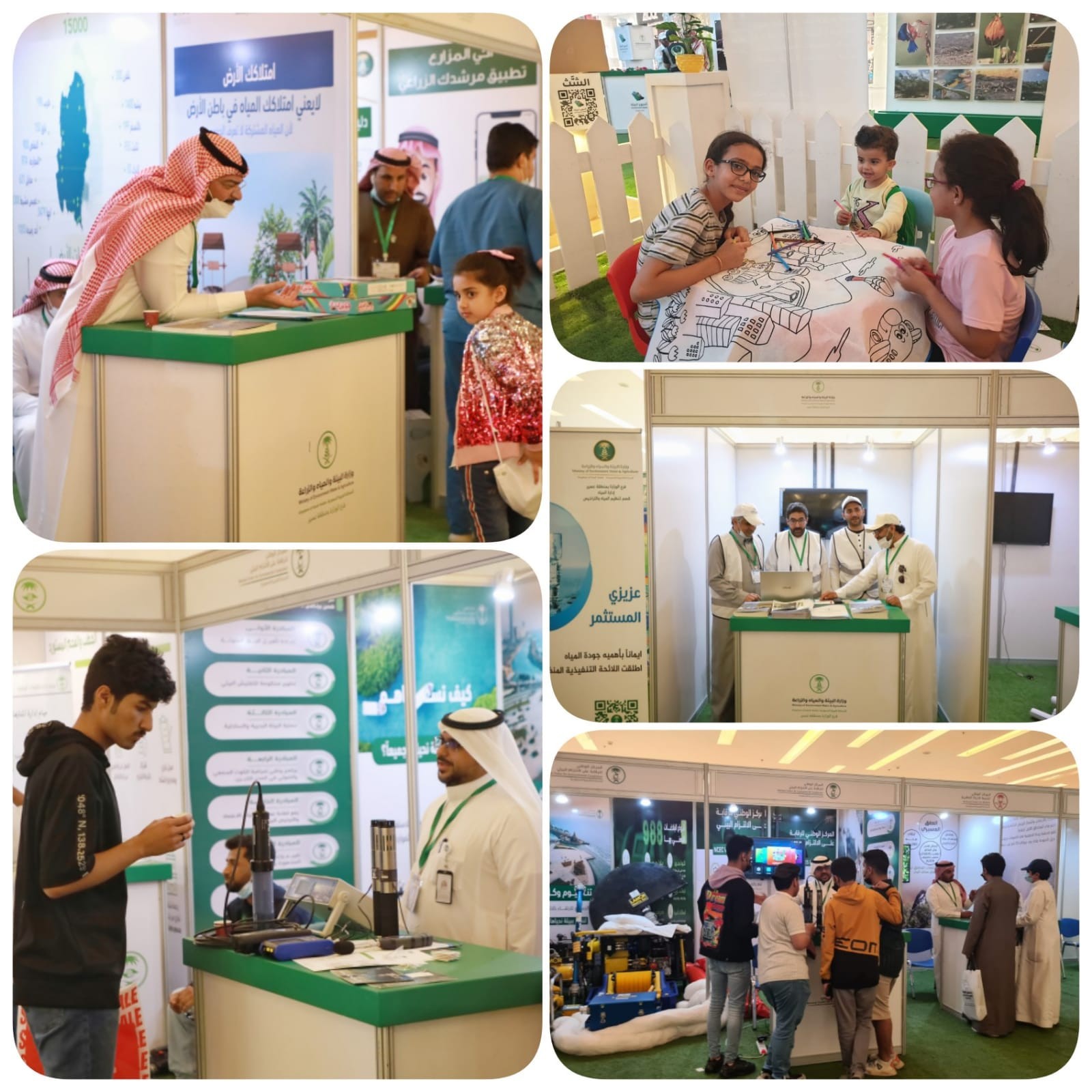 كذلك ركن المركز الوطني للرقابة على الالتزام البيئي ومن اختصاصه الارتقاء بالالتزام البيئي عبر الحد من التلوث من خلال عرض بعض الأجهزة المخصصة التي تسهم في المحافظة على البيئة ، وتشجيع البحث والابتكار والرصد والتقييم والتقنيات الصديقة للبيئة بالتعاون مع الجامعات ومركز الأبحاث المحلية والعالمية ، كما شارك جناح المركز الوطني لتنمية الحياة الفطرية لتعريف الزوار بإسهام المركز في المنظومة البيئية ويعمل على تطوير وتنفيذ خطط للتصدي للأخطار المحدقة بالحياة الفطرية في البر والبحر، وعرض ركن الكلية التقنيه بأبها مجسم تطبيقي لطاقة الرياح واستخدام الطاقة النظيفة والمحافظة على البيئة ، ومركز تنمية الغطاء النباتي ويهدف للتعريف بالغطاء النباتي المزدهر والمتنوع يعزز الاستدامة البيئية ويساهم بجودة الحياة، وصاحب المعرض ركن لرسومات الأطفال.