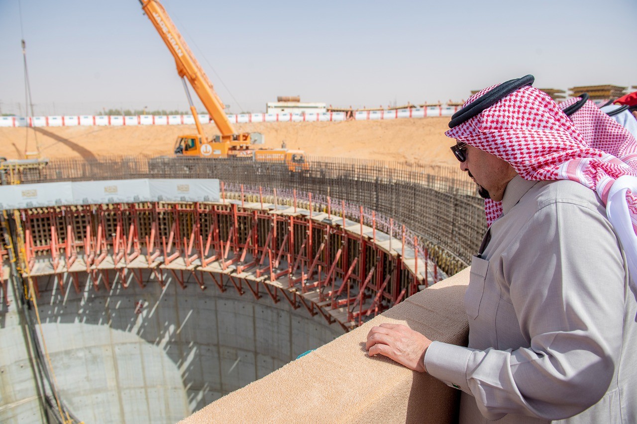 كما أوضح أمين منطقة القصيم م.محمد المجلي بأنه يتم ربط نهاية هذا الخط بمحطة الرفع لوادي الرمة الجاري تنفيذ الأعمال الانشائية بها والتي تصل طاقتها الاستيعابية إلى 100000 م3/ساعة وبعدد (12) مضخة عاملة ومضختين إضافية احتياطية حيث تم الانتهاء من أعمال الجدران الخرسانية بقطر (27) متر وعمق (34) متر باستخدام أحدث طرق التنفيذ الحديثة وتم الصب والإشراف على العمل على مدار (24) ساعة ويبلغ اجمالي حجم الخرسانة في المحطة حوالي (12) ألف متر مكعب وبإجمالي حديد مقاوم بوزن (2200) طن. مؤكداً بأن جميع الأعمال بالمشروع تجري بوتيرة متسارعة لإنهائها بالوقت المحدد.