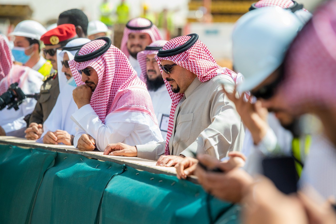 مشيدا سموه جهود امين المنطقة ومنسوبي الأمانة الذين أدوا عملا كبيرا و جهودا عظيمة في هذا المشروع ، مبديا سموه اعتزازه بتلك الجهود والاستعانة بالتقنية العالية للحفر تحت الأرض لتنفيذ المشروع.