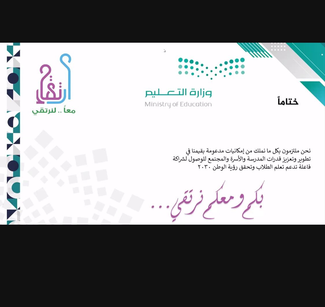 برعاية مساعدة المدير العام للشؤون التعليمية أ.لمياء بشاوري عقدت الإدارة العامة للتعليم بمنطقة مكة المكرمة ممثلة في وحدة شراكة المدرسة مع الأسرة والمجتمع (ارتقاء ) بنات اللقاء الافتراضي لأولياء أمور الطالبات المشاركات في المسابقات الدولية والمحلية في الإدارات ومكاتب التعليم بعنوان( بصمة في مسيرة وطن) ضمن مبادرة (أسرتي ومدرستي) وذلك خلال الفصل الدراسي الثالث ١٤٤٣هـ عبر القاعة الافتراضية ببرنامج الزوم ، نفذته مديرة وحدة ارتقاء بدرية الغامدي وذلك بالتعاون مع كل من منسقة الاختبارات الدولية و الوطنية بإدارة التعليم منى الشريف بعنوان "التعريف بالاختبارات الدولية والوطنية "و بالتعاون مع مكتب يواقيت للاستشارات التربوية والتعليمية المستشارة التربوية أ.ماجدة صديقي بعنوان (همسات تربوية لرفع الدافعية ).