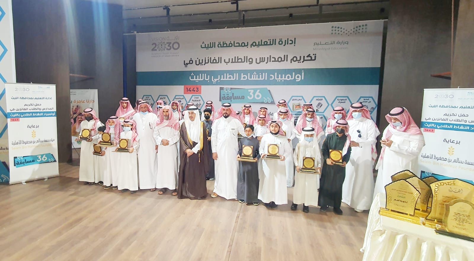اختتمت إدارة التعليم بمحافظة الليث ممثلة في قسم النشاط الطلابي( بنين )، اليوم فعاليات أولمبياد النشاط الطلابي للعام الدراسي ١٤٤٣هـ، بحضور محافظ الليث الأستاذ عمران بن حسن الزهراني، والمساعد للشؤون التعليمية الدكتور محمد بن أحمد النعيري، والمساعد للشؤون المدرسية الدكتور علي بن محمد السوادي ، وعدد من القيادات التعليمية والمعلمين والطلاب وأولياء أمورهم، وذلك بمقر مسرح إدارة التعليم، وجرى خلال الحفل تكريم (١٣٦ ) طالبًا فائزًا، والمدارس الحاصلة على المراكز الأولى، والجهات الداعمة والراعية للمسابقة.