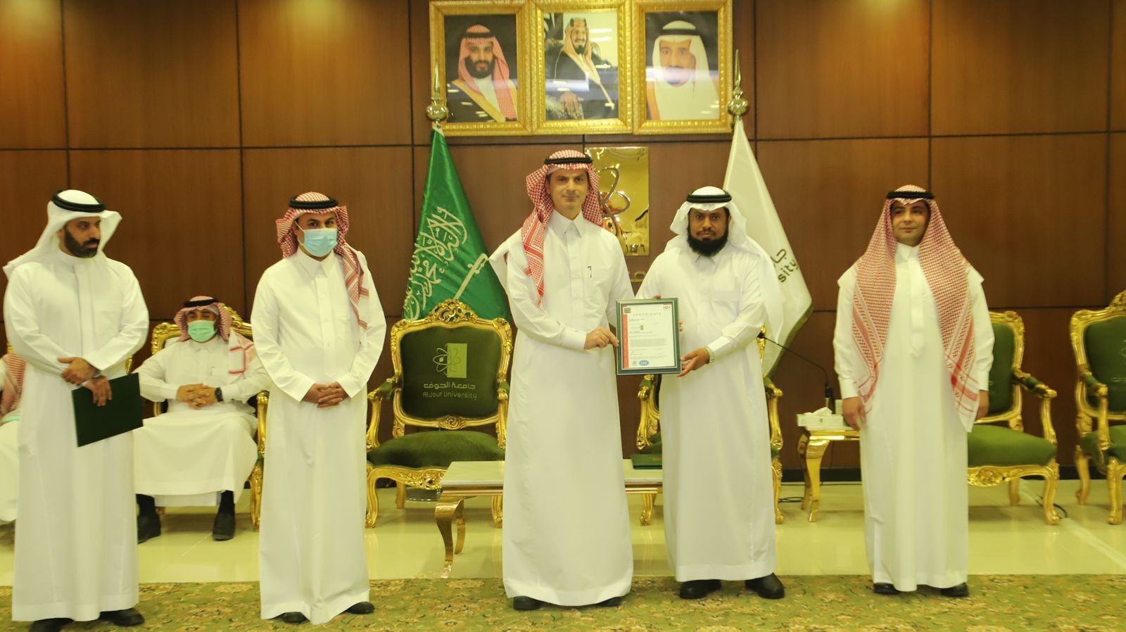 احتفلت جامعة الجوف اليوم بحصول 16 جهة في الجامعة على شهادة الآيزو العالمية ISO 9001:2015 الخاصة بإدارة نظام الجودة، بحضور رئيس الجامعة الدكتور محمد بن عبدالله الشايع، ضمن مشروع التطوير المؤسسي الذي أطلقته الجامعة.