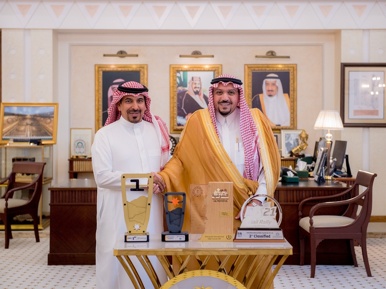 كما استقبل سموه الكريم مدير فرع وزارة الرياضة بالقصيم هدلق الهدلق يرافقه المتسابق حمد ناصر الحربي لتحقيقه المركز الأول في رالي الأردن لعام 2021م وكذلك المركز الأول في رالي الشرقية لعام 2021م ، برفقة الملاح وليد الشقاوي ، بحضور وكيل إمارة القصيم الدكتور عبدالرحمن الوزان .