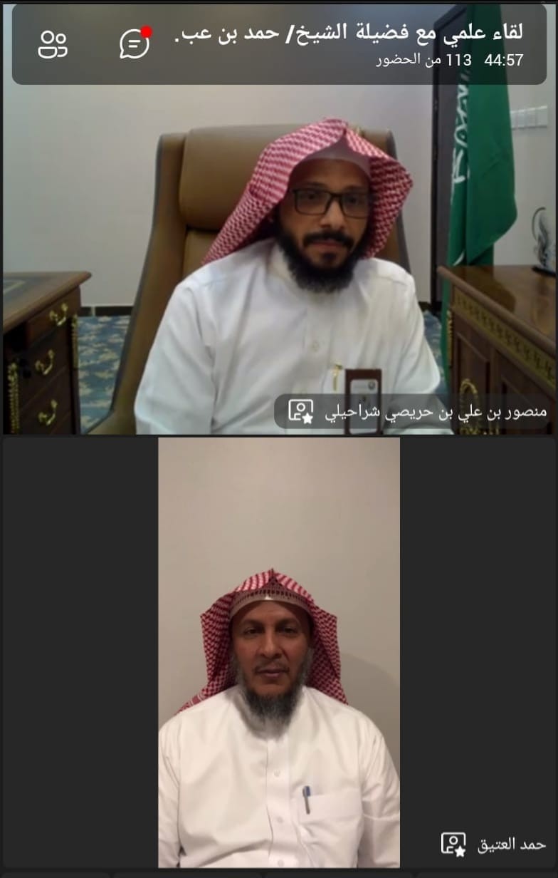نظمت وحدة الأمن الفكري بالرئاسة العامة لهيئة الأمر بالمعروف والنهي عن المنكر لقاءً علمياً وقائياً وتوجيهياً لتعزيز الأمن الفكري لمنسوبي فرع الرئاسة العامة بمنطقة الباحة من إداريين وميدانيين، بعنوان "الاعتزاز بمنجزات الوطن وأثره على النشء"،ألقاه فضيلة الشيخ حمد بن عبدالعزيز العتيق، عبر الاتصال المرئي.