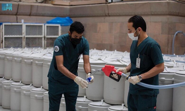 شؤون المسجد النبوي تواصل أعمالها اليومية في أخذ العينات المخبرية لماء زمزم المبارك