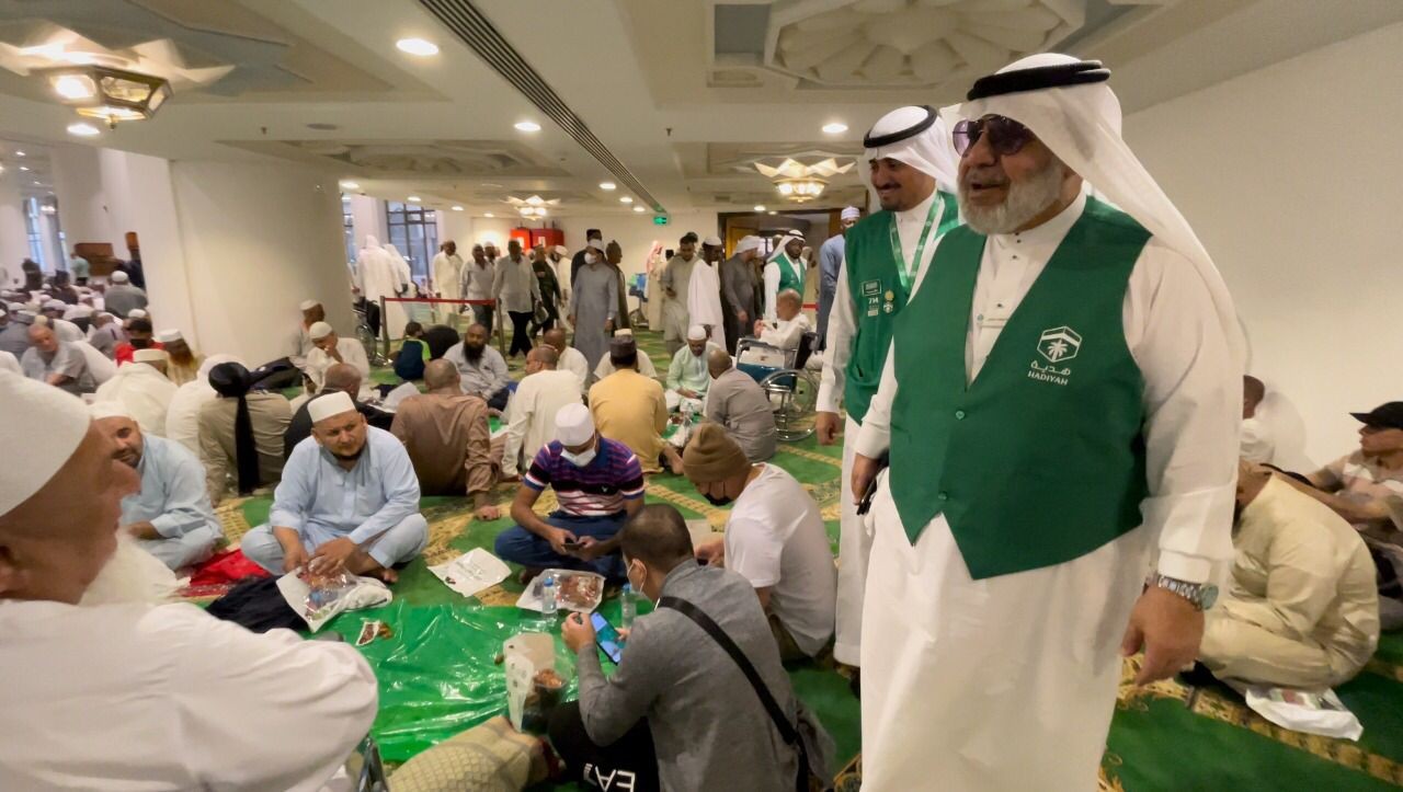 واطلعا خلال جولاتهم الميدانية على سير خطة الجمعية لشهر رمضان المبارك لخدمة أكثر ٣ ملايين مستفيد من المعتمرين والمصلين بالحرمين الشريفين، واللقاء بخدام ضيوف الرحمن من المضيفين والمضيفات في جمعية (هدية) من جانبه عبر "سنكي" عن سعادته بما شاهدناه من تفاني في العمل من الشباب بالميدان ومن من التزام من مضيفي ومضيفات الجمعية، واستشعارهم بحجم المسؤولية الملقى على عاتقهم في خدمة أغلى وفد "ضيوف الرحمن"، وهذا ما كان واضحاً على محياهم من سعادة وفرحة بالضيف الكريم موضحاً أن الجمعية أطلقت في هذا الشهر المبارك وسم #لقياكم_هدية استبشاراً بعودة الحياة إلى وضعها الطبيعي، وعودة المعتمرين والمصلين وسفر إفطار الصائمين في الحرمين الشريفين بعد غياب دام لعامين بسبب جائحة كورونا. وبين "سنكي": " أن جمعية هدية جهزت خطتها هذا العام لخدمة 3,026,650 مليون مستفيد من المعتمرين والمصلين والصائمين في 45 نقطة اتصال في الحرمين الشريفين ومحطة قطار الحرمين السريع بمكة المكرمة ومحطة قطار الحرمين السريع بمطار الملك عبد العزيز بجدة ومداخل مكة ومراكز نقل المعتمرين التابعة للنقابة العامة للسيارات.