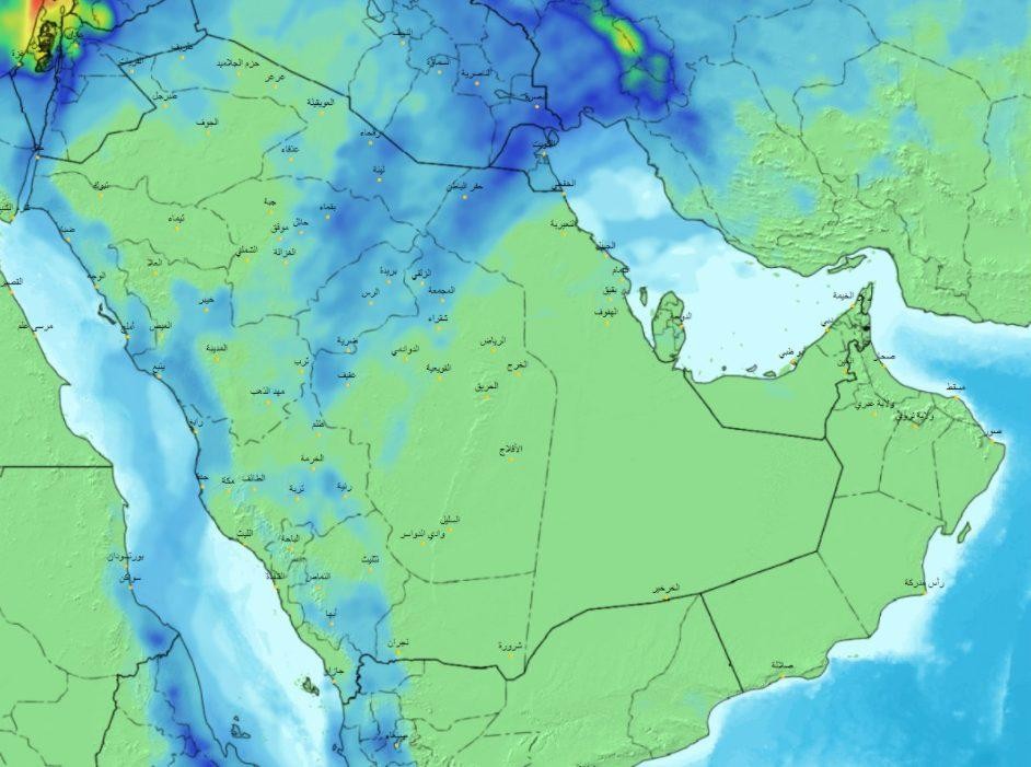 في حين تنشط الرياح السطحية المثيرة للأتربة والغبار تحد من مدى الرؤية الافقية على أجزاء من مناطق الحدود الشمالية، الرياض والشرقية.
