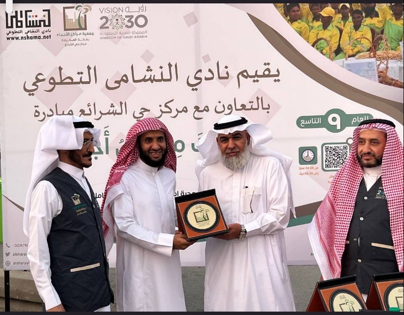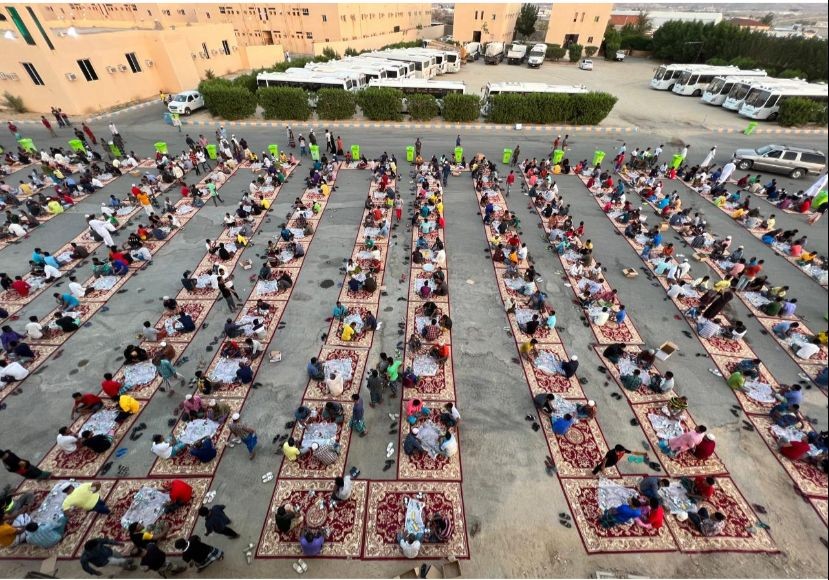 اجتمع أكثر من ألفي عامل نظافة على مائدة إفطار قدمها لهم فريق نادي النشامى التطوعي بالتعاون مع مركز حي الشرائع التابع لجمعية مراكز الأحياء في مقر معسكر سكنهم بضاحية اللحيانية شرق مكة المكرمة، جريا على العادة السنوية وللعام التاسع على التوالي في مبادرتهم "ولك مثل أجره"، وسط حميمة تميزت بالروحانية والأجواء الإيمانية، وأقيمت المبادرة بحضور ورعاية مدير عام جمعية مراكز الأحياء بمكة المكرمة وتعظيم البلد الحرام الدكتور طلال بن مبارك اللهيبي، وتقدم المنظمون رئيس مجلس إدارة المركز إبراهيم الثقفي، والمدير التنفيذي صالح الزهراني وعضو مجلس الإدارة حجب العصيمي والمساعد الإداري بالمركز محمد العبيدي ورئيس قسم النشاط الاجتماعي والرياضي الأستاذ تركي اللحياني، وأعضاء فريق نادي النشامى التطوعي، وأكثر من ستين متطوعا.