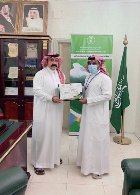 كرم مدير مكتب فرع وزارة البيئة والمياه والزراعة بمحافظة رجال ألمع الأستاذ إبراهيم مريع البناوي ، الإعلامي عامر آل عامر صحيفة الحدث الإلكترونية على مايقوم به من تغطية لأخبار المنطقة عموماً وفرع مكتب وزارة البيئة والمياه والزراعة برجال ألمع على وجه الخصوص، وقدم البناوي شكره وإمتنانه للإعلامي عامر آل عامر على ماقام به من جهد متمنياً له المزيد من التوفيق والنجاح.