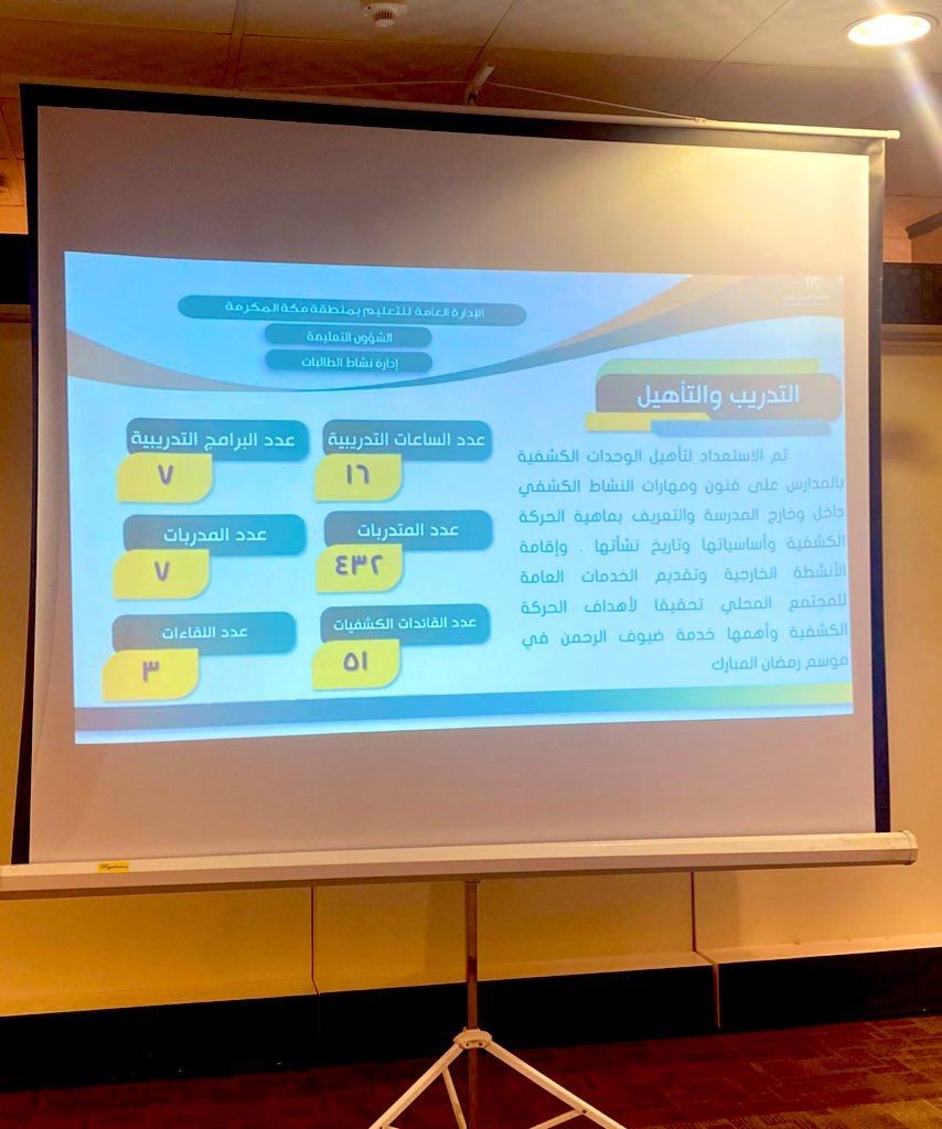 وبدورها أبانت مديرة إدارة نشاط الطالبات د. ليلى الصاعدي بأنه تم الاستعداد لتأهيل الوحدات الكشفية بالمدارس على فنون ومهارات النشاط الكشفي داخل وخارج المدرسة من خلال تنفيذ الدورات التاهيلية لهن والتي تتضمن برامج متنوعة تم التعريف فيها بماهية الحركة الكشفية وأساسياتها وتاريخ نشأتها وإقامة الأنشطة الخارجية وتقديم الخدمات العامة للمجتمع المحلي تحقيقا لأهداف الحركة الكشفية وأهمها تقديم الخدمات التطوعية بالحرم المكي لضيوف الرحمن والمساندة بالتعاون مع الرئاسة العامة لشوؤن المسجد الحرام ممثلة في إدارة الخدمات الاجتماعية وإدارة العمل التطوعي بالرئاسة.