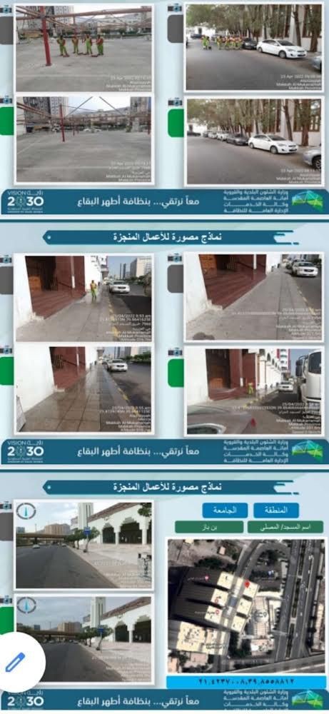 وأكدت أمانة العاصمة المقدسة بأن مجهوداتها متواصلة ومستمرة من جانب الإدارة العامة للنظافة واقسام النظافة في البلديات الفرعية ، والأعمال تسير بخطى متسارعة من أجل اكمال كل الاستعدادات الخاصة بتجهيزات مصليات العيد والساحات المحيطة بالمساجد ، وذلك بتحديد المناطق المستهدفة والاليات المستخدمة وكذلك الفرق التي ستتولى أمر هذه العملية ، خاصة في غسيل وتنظيف الساحات الخارجية المحيطة بالمساجد التي تستوعب اعدادا كبيرة ، والتي غالبا ما تكون هي المكان المفضل لمعظم المصلين رغم حرارة الأجواء ، لتمكنهم من الإلتقاء بأكبر عدد من الأهل والأصدقاء والجيران لتبادل تهاني العيد معهم .