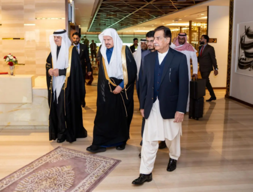 وكان في استقبال معاليه لدى وصوله مطار إسلام آباد الدولي رئيس الجمعية الوطنية الباكستانية (البرلمان) سردار إياز صادق, وسفير خادم الحرمين الشريفين لدى باكستان نواف بن سعيد المالكي، وعددٌ من كبار المسؤولين في الجمعية الوطنية الباكستانية.