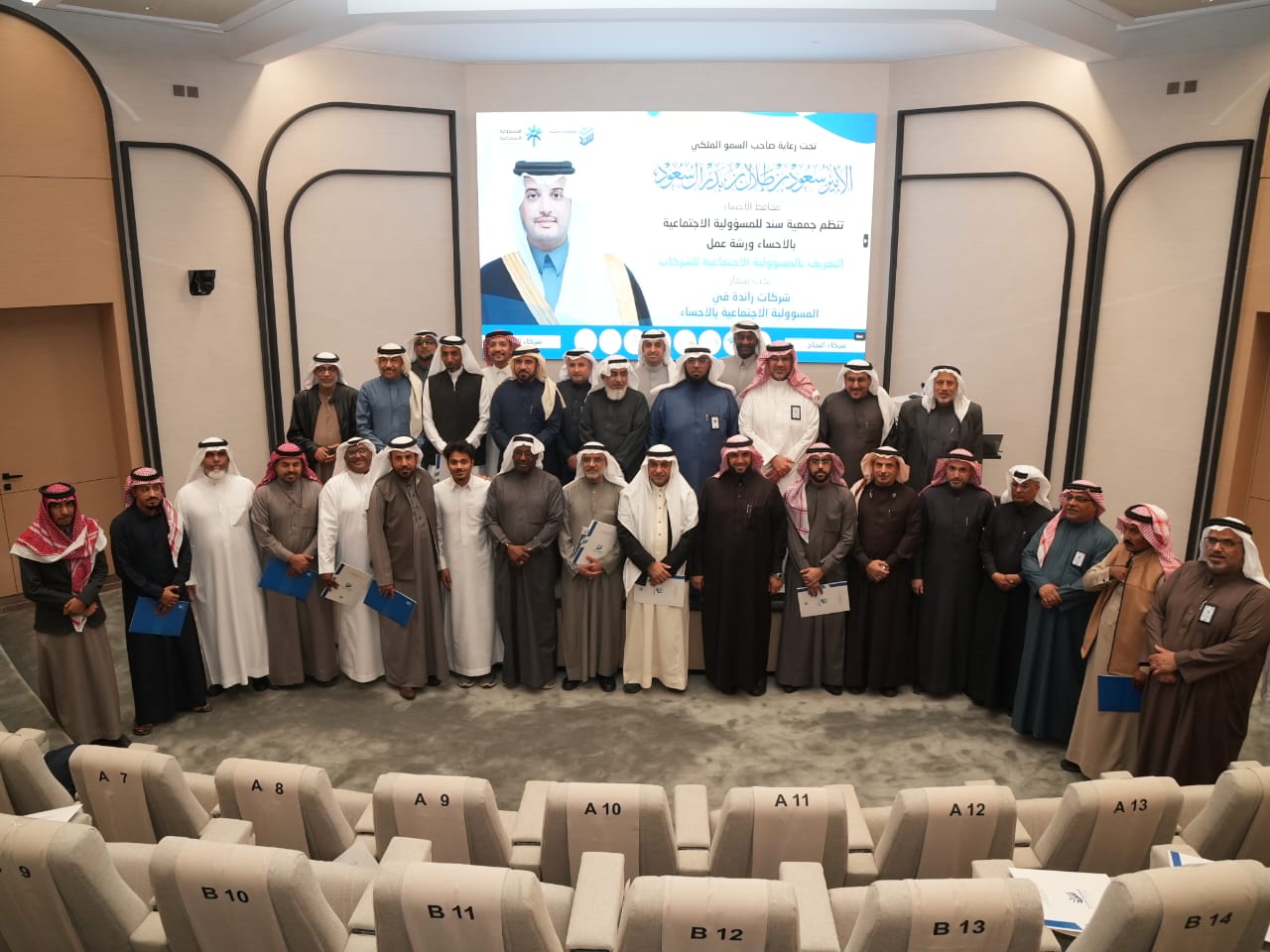 برعاية سمو محافظ الأحساء الأمير سعود بن طلال بن بدر آل سعود ، نظمت جمعية سند للمسؤولية الاجتماعية يوم الثلاثاء  ورشة عمل بعنوان "التعريف بالمسؤولية الاجتماعية للشركات" تحت شعار شركات رائدة في المسؤولية الاجتماعية بالأحساء، في قاعة الشيخ سليمان الحماد (رحمه الله) بالغرفة التجارية.