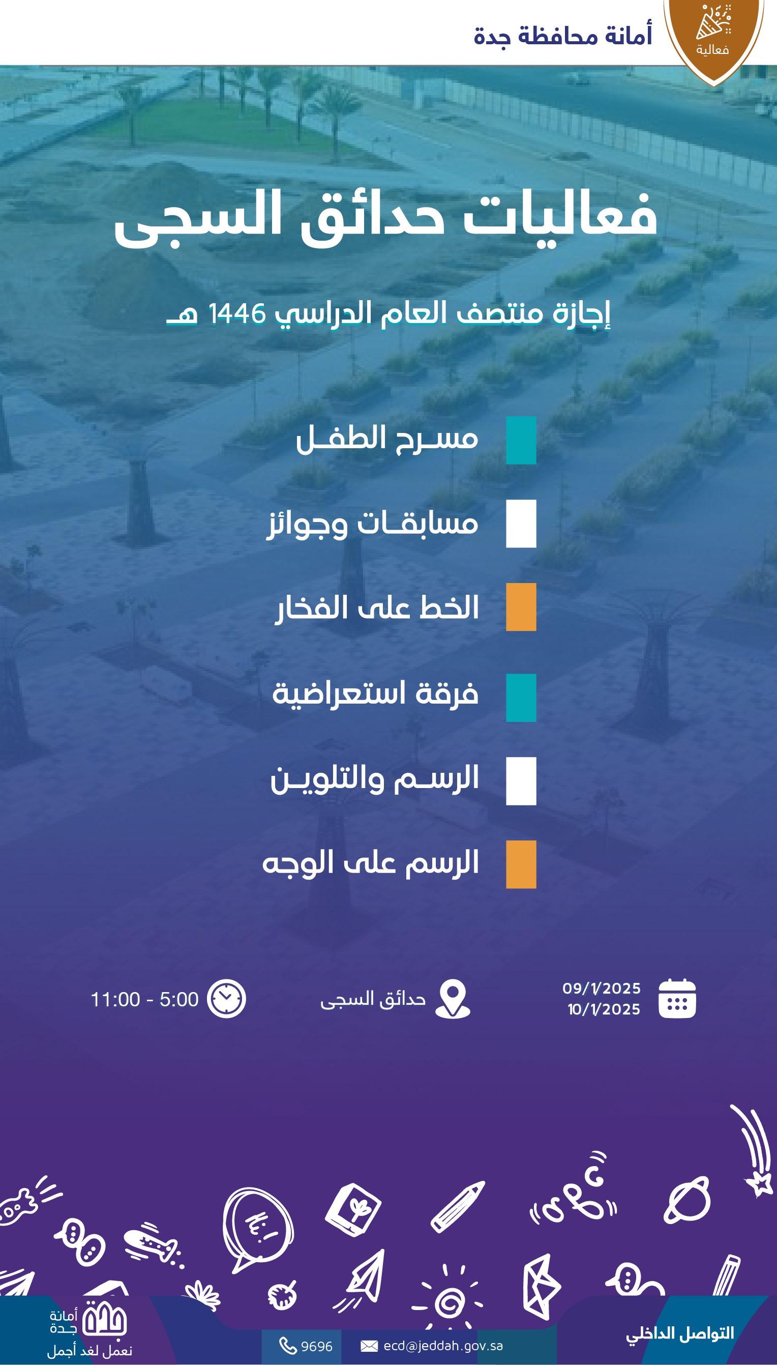 أمانة جدة تطلق فعاليات متنوعة بـ حدائق السجى احتفاءً بإجازة منتصف الفصل الدراسي الثاني