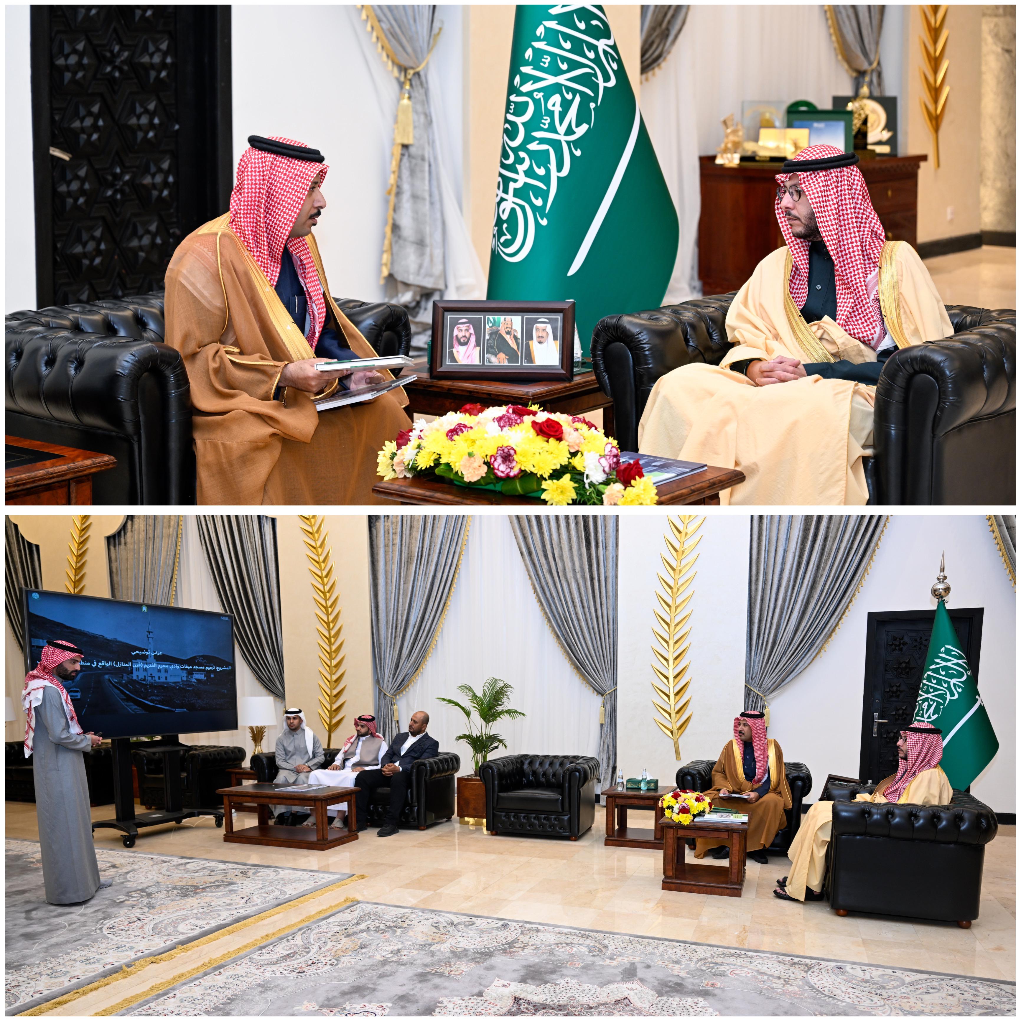 واطلع سموه على عرض توضيحي لمشروع ترميم مسجد ميقات قرن المنازل القديم بطريق الهدا والذي يتسع بعد الإنتهاء من تنفيذ المشروع600مصلٍ . ويضم المسجد مركز لحلقات تحفيظ القرآن الكريم