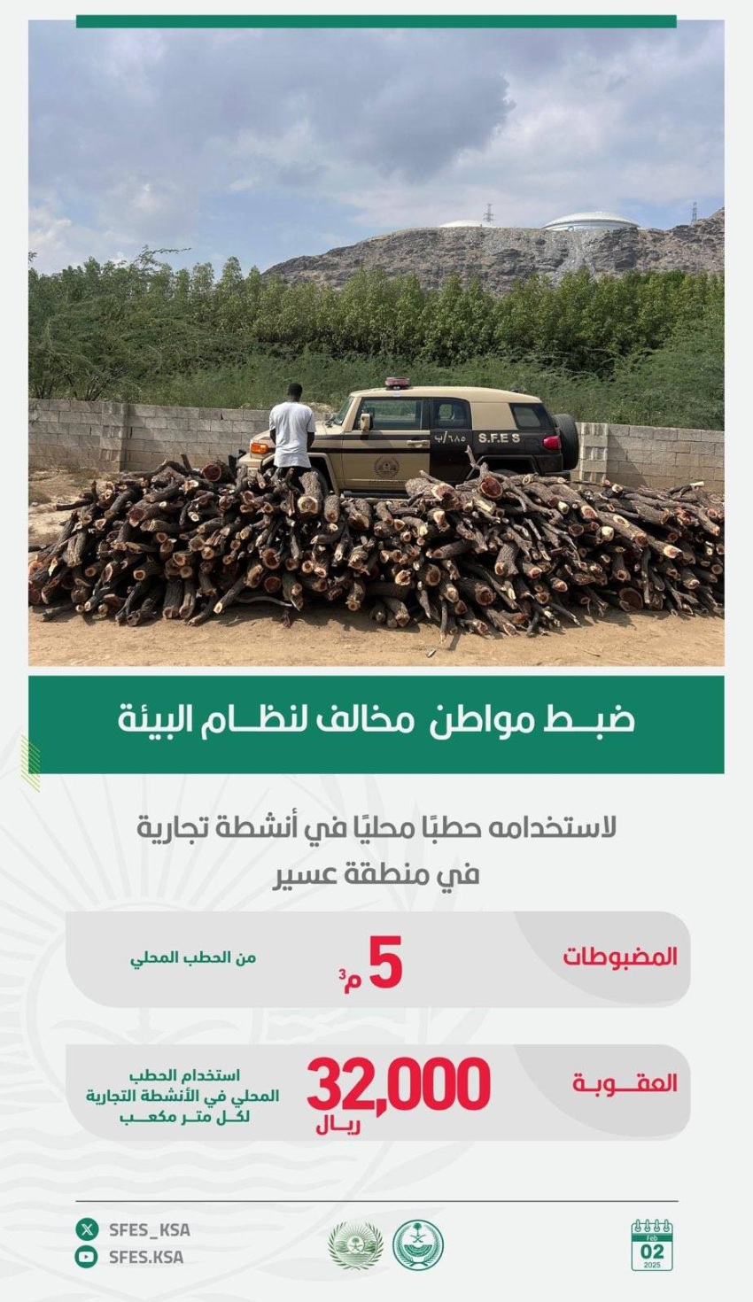 "الأمن البيئي" بعسير يضبط مواطنًا لاستخدامه حطبًا محليًا في أنشطة تجارية