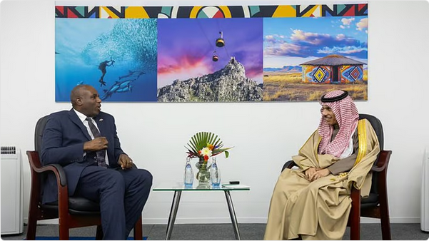 حضر اللقاء سفير خادم الحرمين الشريفين لدى جمهورية جنوب إفريقيا فيصل بن فلاح الحربي، ومساعد مدير عام مكتب سمو الوزير وليد السماعيل.