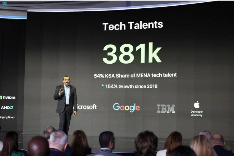 وأشار السواحه إلى أن رؤية المملكة 2030، التي أطلقها سمو ولي العهد رئيس مجلس الوزراء الأمير محمد بن سلمان -حفظه الله-، شكلت "قصة النجاح الأبرز في القرن الحادي والعشرين"، ليصبح الاقتصاد الرقمي للمملكة يناهز 132 مليار دولار، مساهمًا بنسبة 50% من حجم الاقتصاد الرقمي الإقليمي البالغ 260 مليار دولار، منوهًا بزيادة عدد الموهوبين التقنيين في المملكة من 150 ألفًا إلى 381 ألفًا، مما يعكس النمو السريع في مجالات التقنية والابتكار.