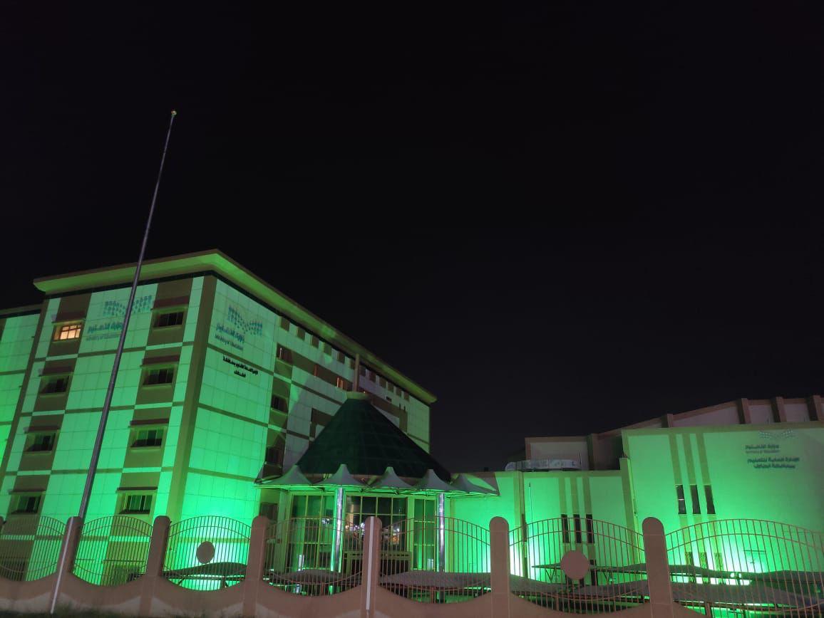 اكتست مباني الإدارة العامة للتعليم بالطآئف ومدارسها ، باللون الأخضر وبشعار يوم التأسيس احتفالاً وابتهاجًا بيوم التأسيس.