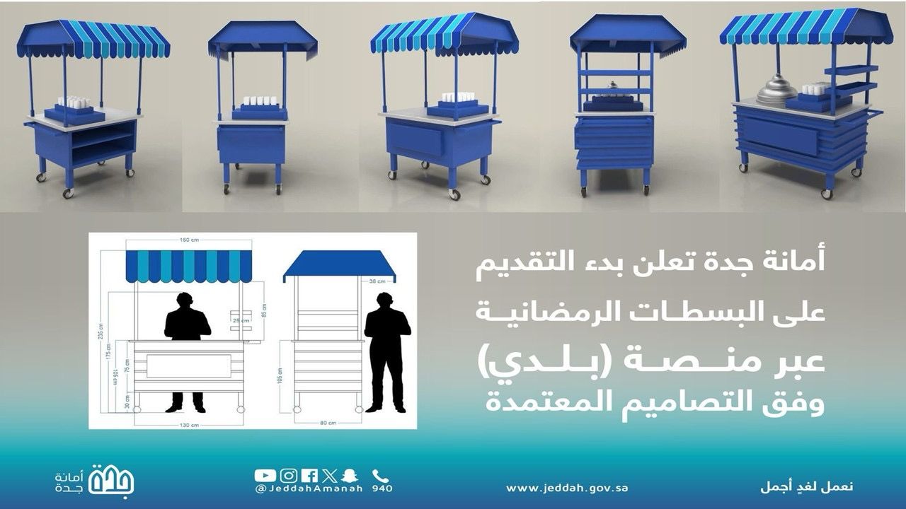 وأوضحت الأمانة أن التقديم سيستمر حتى 20 رمضان، داعية الراغبين إلى المبادرة بالتسجيل والالتزام بالتصاميم المعتمدة للبسطات والمتطلبات التنظيمية لضمان تقديم الخدمات وفق المعايير المحددة.