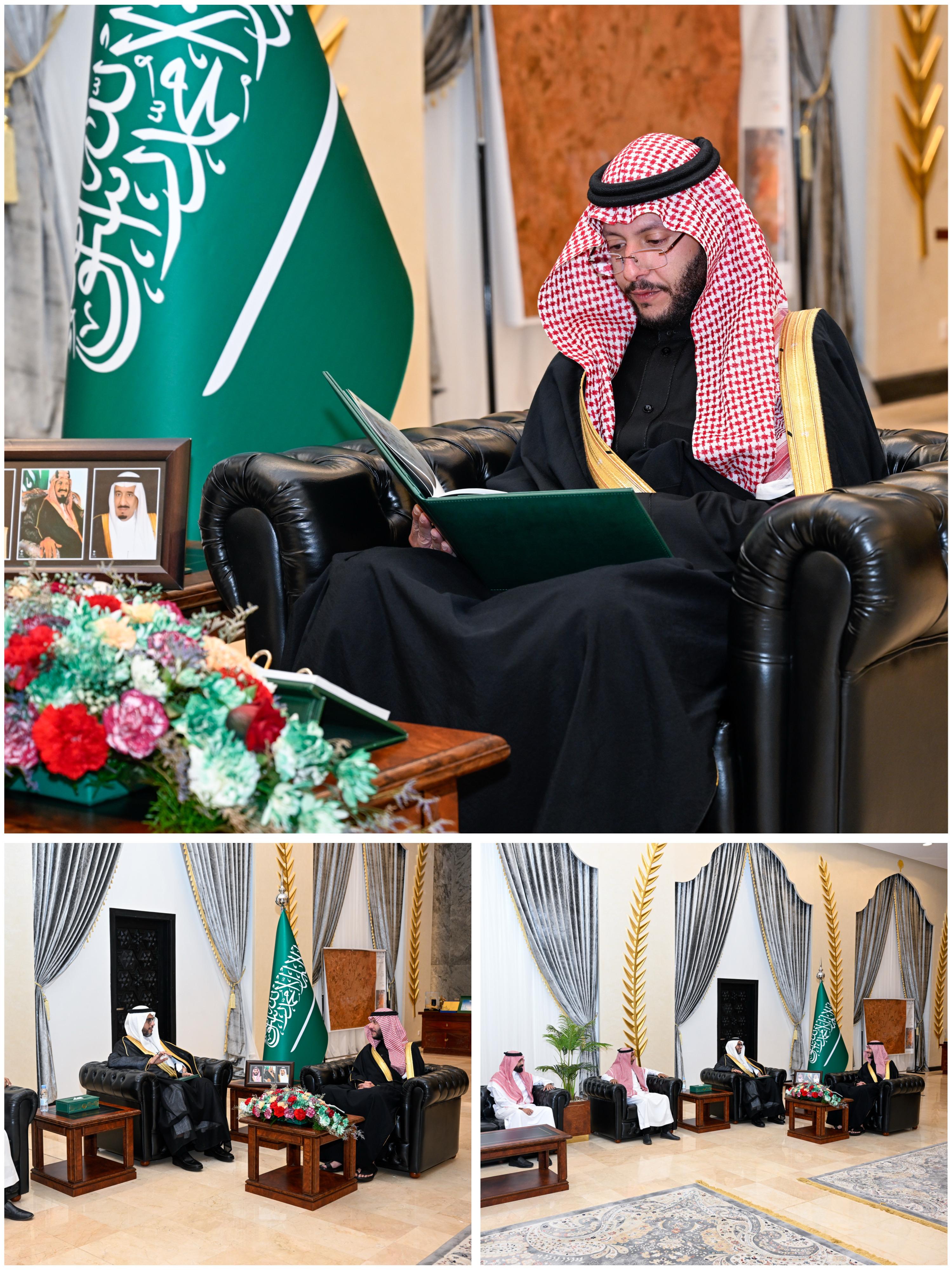 استقبل صاحب السمو الملكي الأمير سعود بن نهار بن سعود بن عبدالعزيز مدير فرع وزارة التجارة في منطقة مكة المكرمة خليل إبراهيم مخشع يرافقه مدير فرع وزارة التجارة في الطائف حسان الياسي.