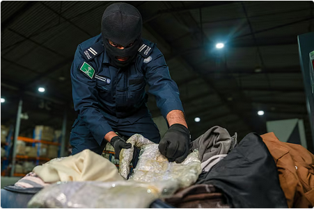 وأكدت هيئة "الزكاة والضريبة والجمارك" أنها ماضية في إحكام الرقابة الجمركية على واردات وصادرات المملكة، وتقف بالمرصاد أمام محاولات أرباب التهريب، وذلك تحقيقًا لأبرز ركائز استراتيجيتها المتمثلة في تعزيز أمن وحماية المجتمع بالحد من محاولات التهريب.