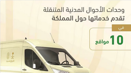 وحدات الأحوال المدنية المتنقلة تقدّم خدماتها في (10) مواقع حول المملكة