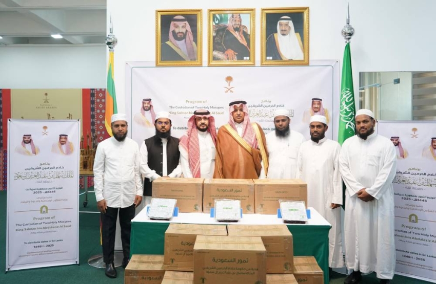 نفّذت وزارة الشؤون الإسلامية والدعوة والإرشاد ممثلة بالملحقية الدينية في سفارة خادم الحرمين الشريفين بالهند في السادس من شهر رمضان 1446هـ، برنامج خادم الحرمين الشريفين لتوزيع التمور في جمهورية سريلانكا، وذلك بمقر سفارة المملكة بالعاصمة كولومبو، بحضور سفير خادم الحرمين الشريفين لدى جمهورية سريلانكا خالد بن حمود القحطاني، وعددٍ من الشخصيات من مديري الجامعات والجمعيات والمراكز الإسلامية، حيث ستسلّم خمسة أطنان من التمور الفاخرة لتوزيعها على الجمعيات الخيرية والمساجد والمؤسسات الإسلامية في مختلف مدن ومناطق سريلانكا، يستفيد منها قرابة 25.000 ألف مستفيد، في إطار الجهود الإنسانية المستمرة للمملكة في خدمة الإسلام والمسلمين حول العالم خلال شهر رمضان المبارك.