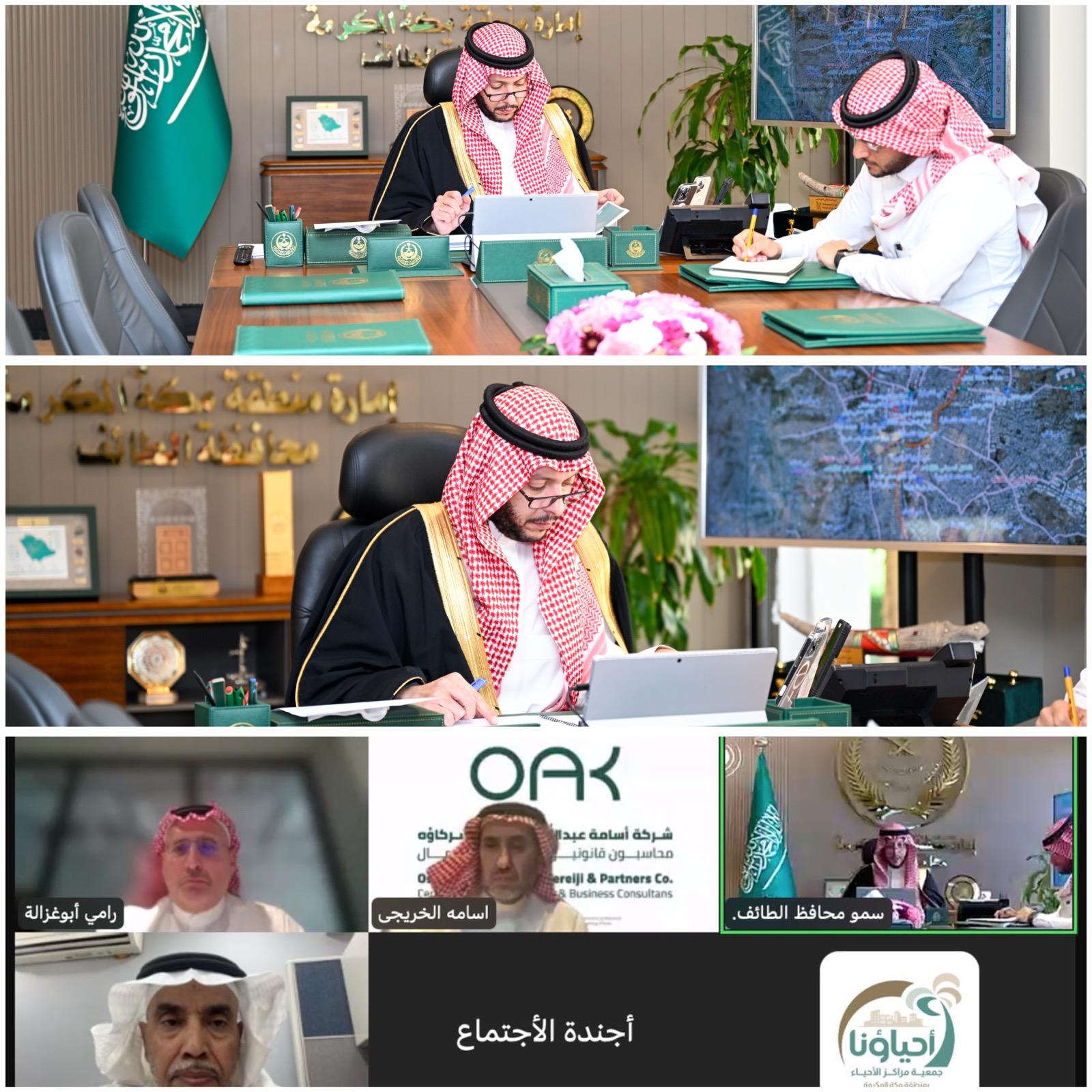 نيابة عن صاحب السمو الملكي الأمير خالد بن فيصل بن عبدالعزيز مستشار خادم الحرمين الشريفين أمير منطقة مكة المكرمة رئيس مجلس إدارة جمعية مراكز الأحياء بالمنطقة, عقد صاحب السمو الملكي الأمير سعود بن نهار بن سعود بن عبدالعزيز محافظ الطائف نائب رئيس مجلس إدارة الجمعية عضو لجنة التنسيق والتكامل عبر الاتصال المرئي اليوم, اجتماع مجلس إدارة جمعية مراكز الأحياء في دورتها الرابعة.