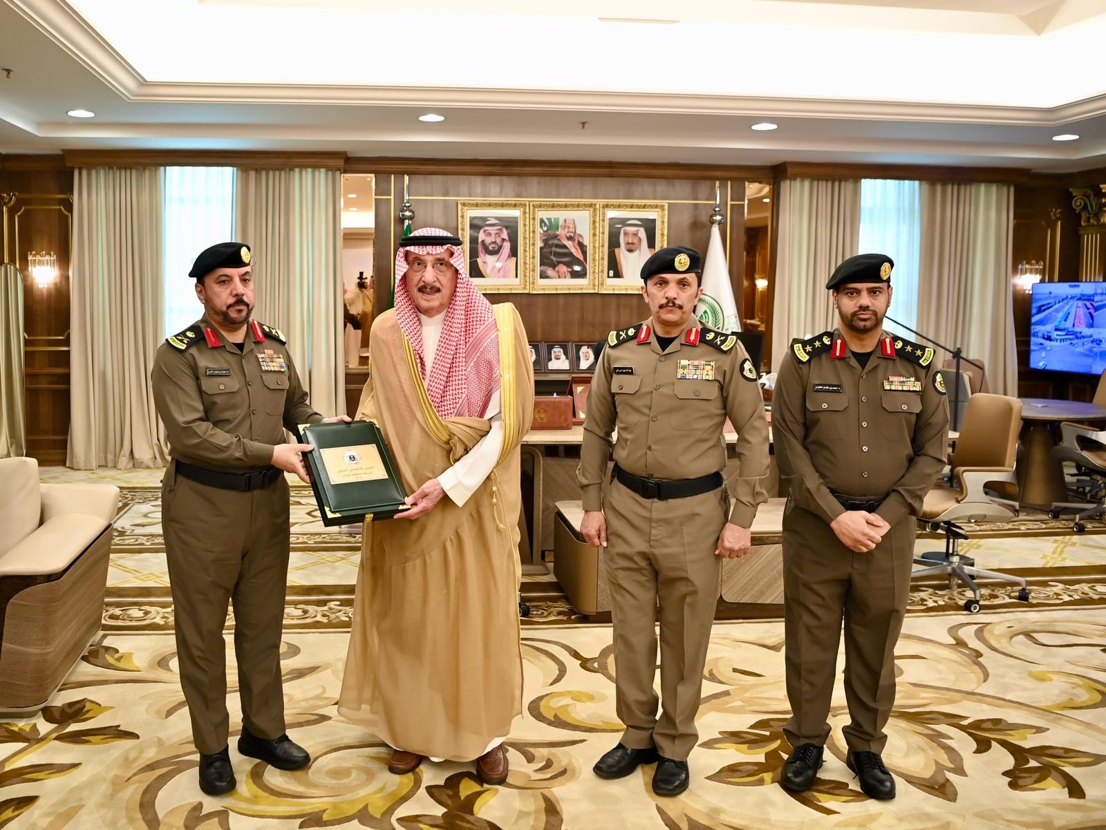 وتسلّم سموه خلال الاستقبال، التقرير السنوي لشرطة المنطقة والإدارات الأمنية التابعة لها للعام المنصرم 2024م، مستمعًا لشرح عن التقرير وما تضمنه من الجهود والأعمال والمهام التي قامت بها تلك الإدارات في شتى المجالات الأمنية التي تقع في إطار عمل شرطة المنطقة.