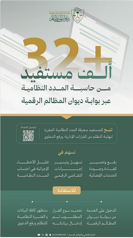 حاسبة المدد النظامية تخدم أكثر من 32 ألف مستفيد في ديوان المظالم
