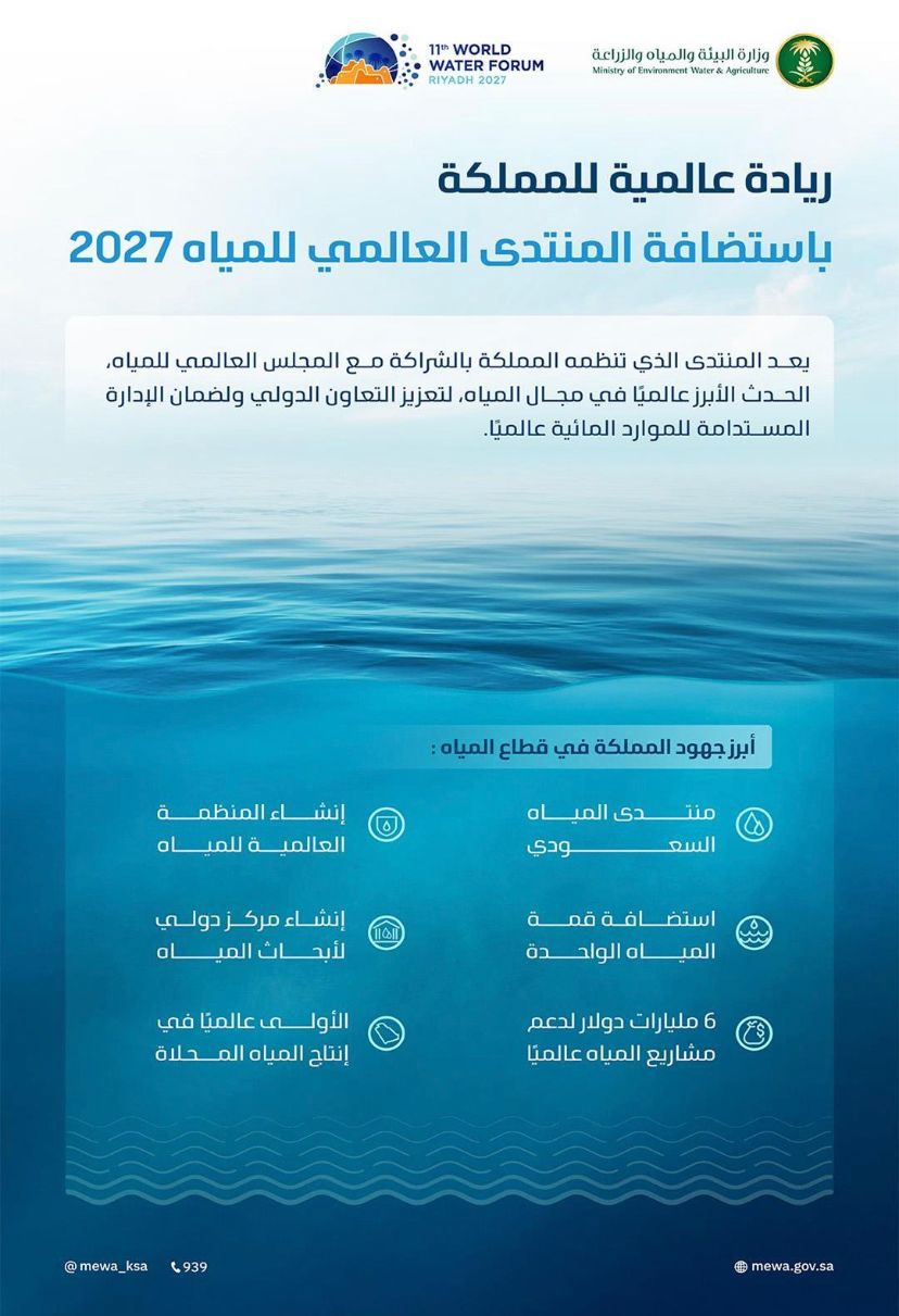 انطلاق أعمال المنتدى العالمي للمياه 2027 في الرياض الاثنين المقبل