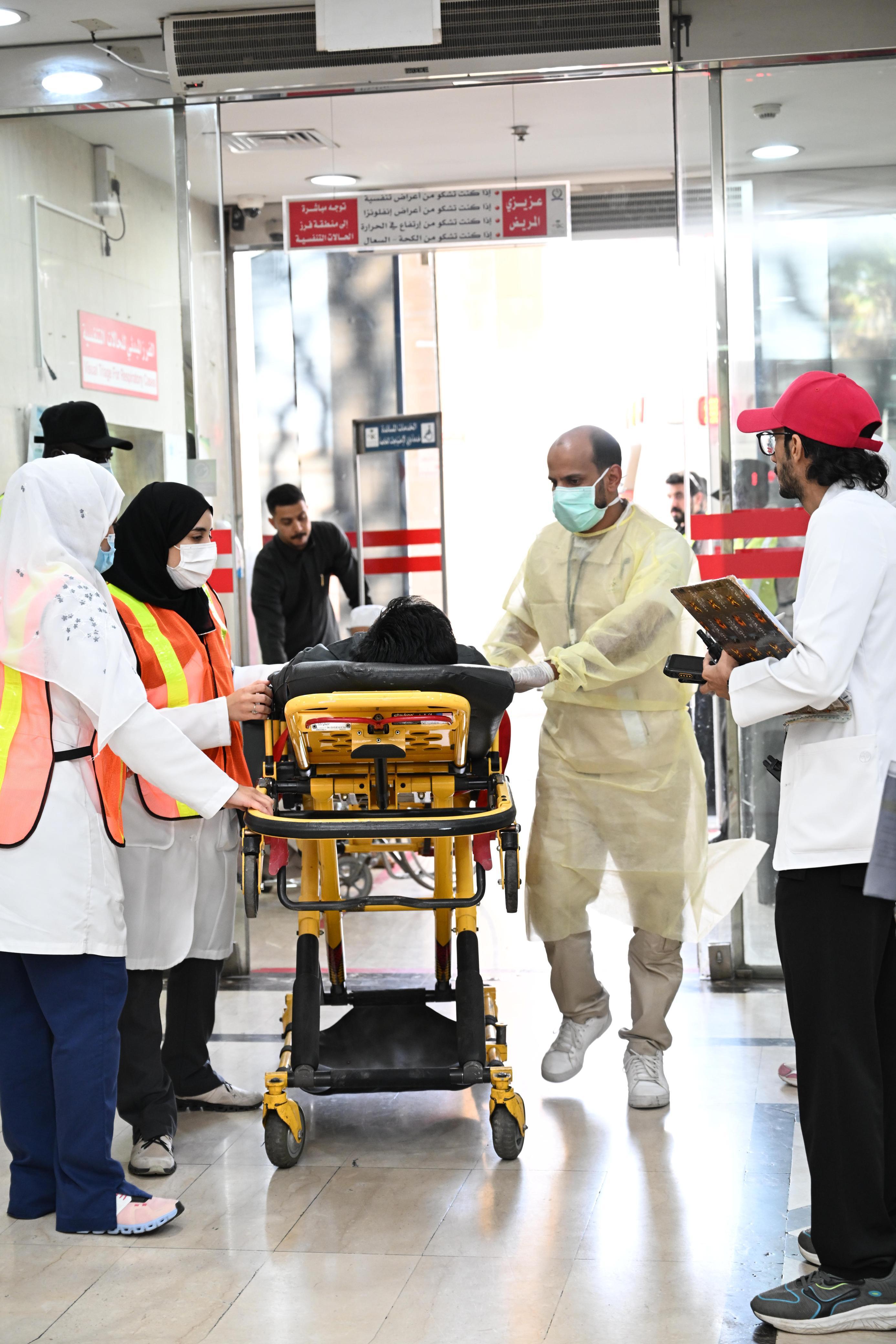 ففي مجمع الملك عبدالله الطبي ، جرت فرضية شاملة من خلال مركز ادارة الأزمات و الكوارث الصحية بفرع وزارة الصحة بجدة هدفت الى قياس الجاهزية بالتجمع الصحي الثاني من خلال مجمع المالك عبدالله الطبي لتسليط الضوء على التحديات و تقييم كفاءة الفرق الطبية و الإدارية في التعامل مع عدد من السيناريوهات الطارئة المحتملة خلال فترة الحج ، و قد تضمنت المحاكاة استقبال و علاج حالات مرضية و إصابات متنوعة ، و التحقق من إنسيابية الإجراءات التشغيلية و التنسيق الفعال بين الأقسام .